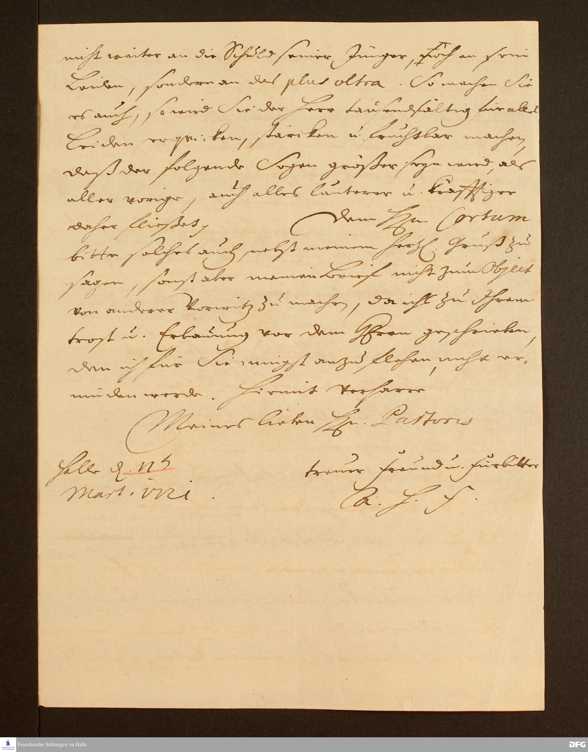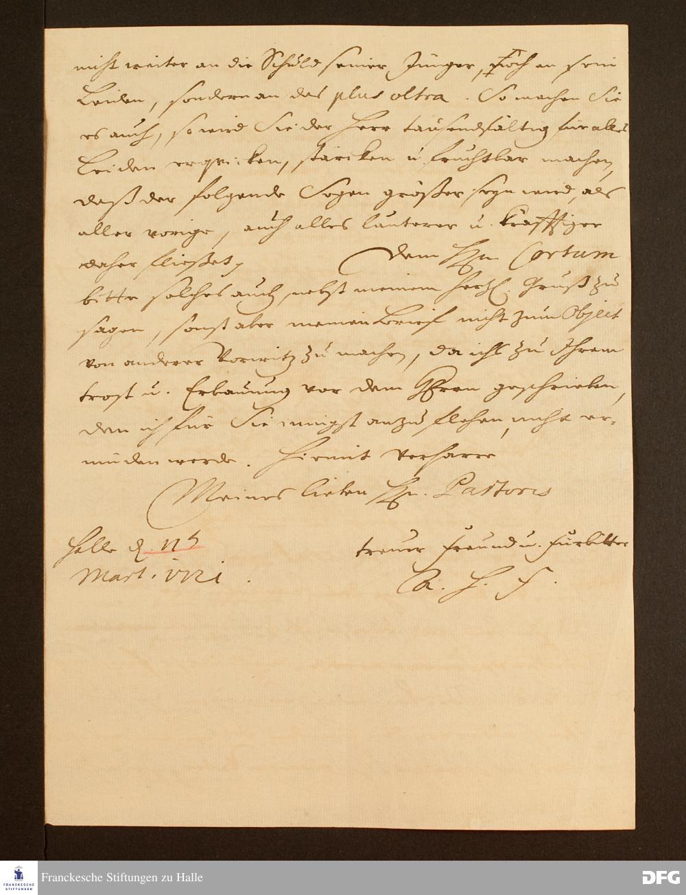 Brief von August Hermann Francke an Petrus Mahler.