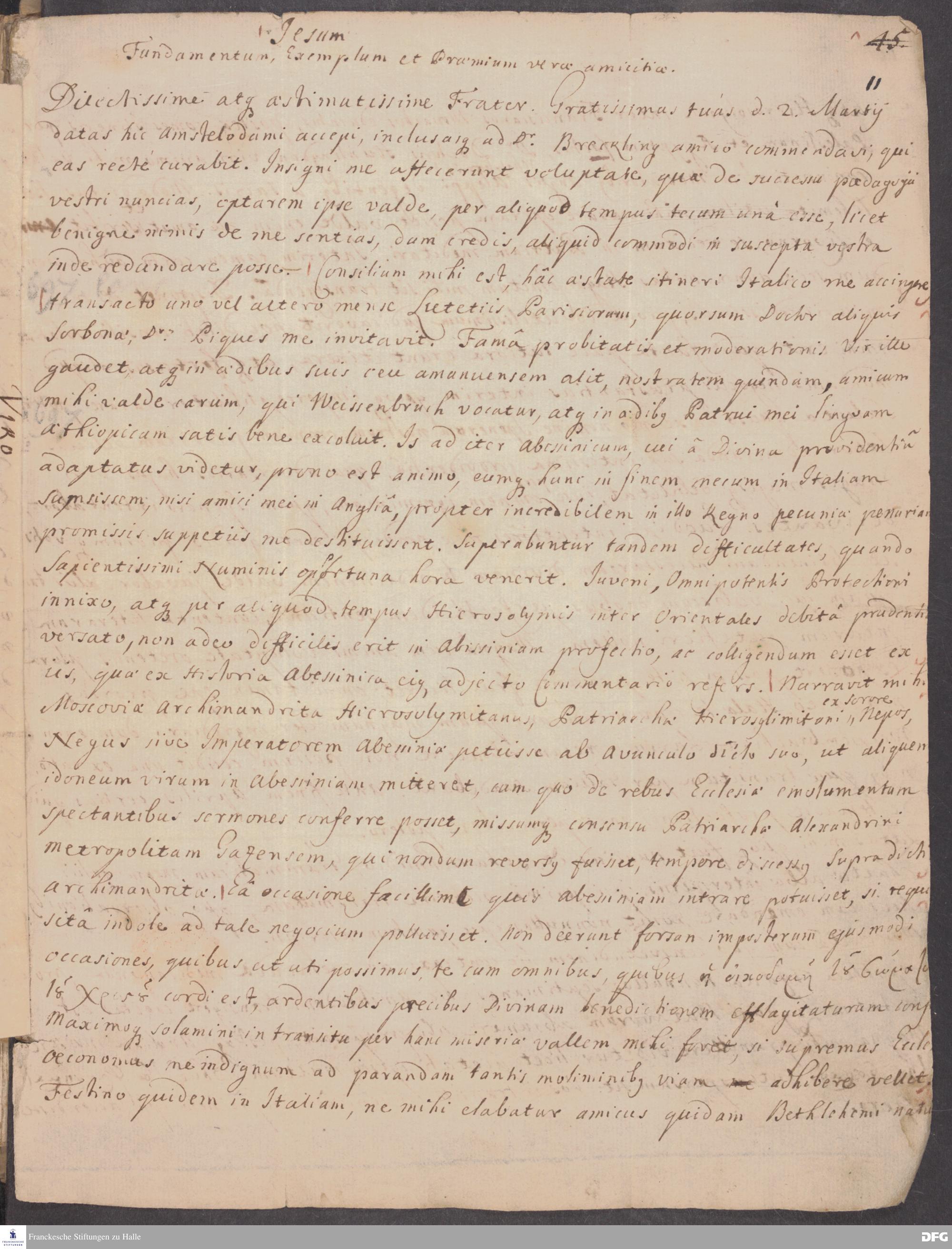 Brief von Heinrich Wilhelm Ludolf an August Hermann Francke.