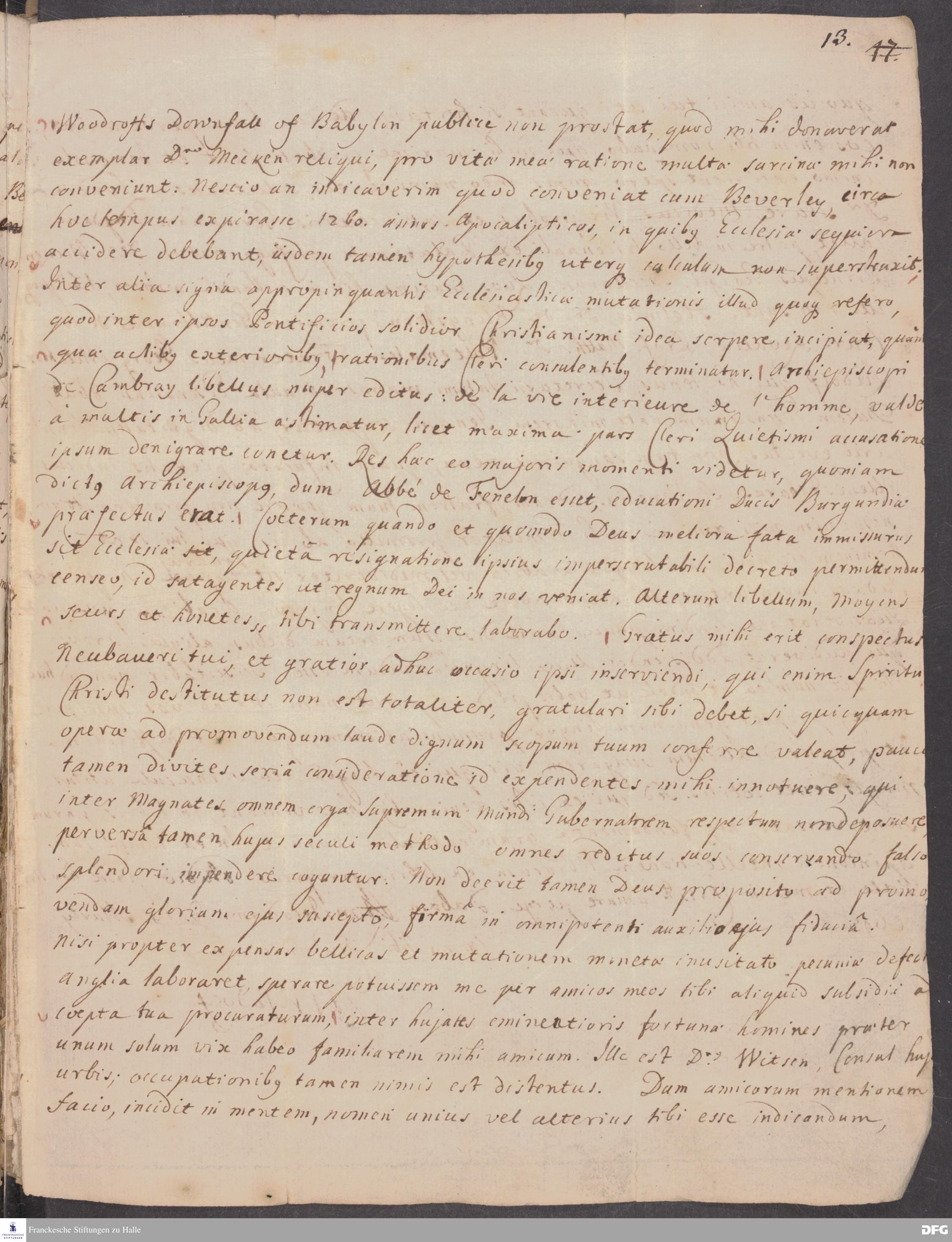 Brief von Heinrich Wilhelm Ludolf an August Hermann Francke.