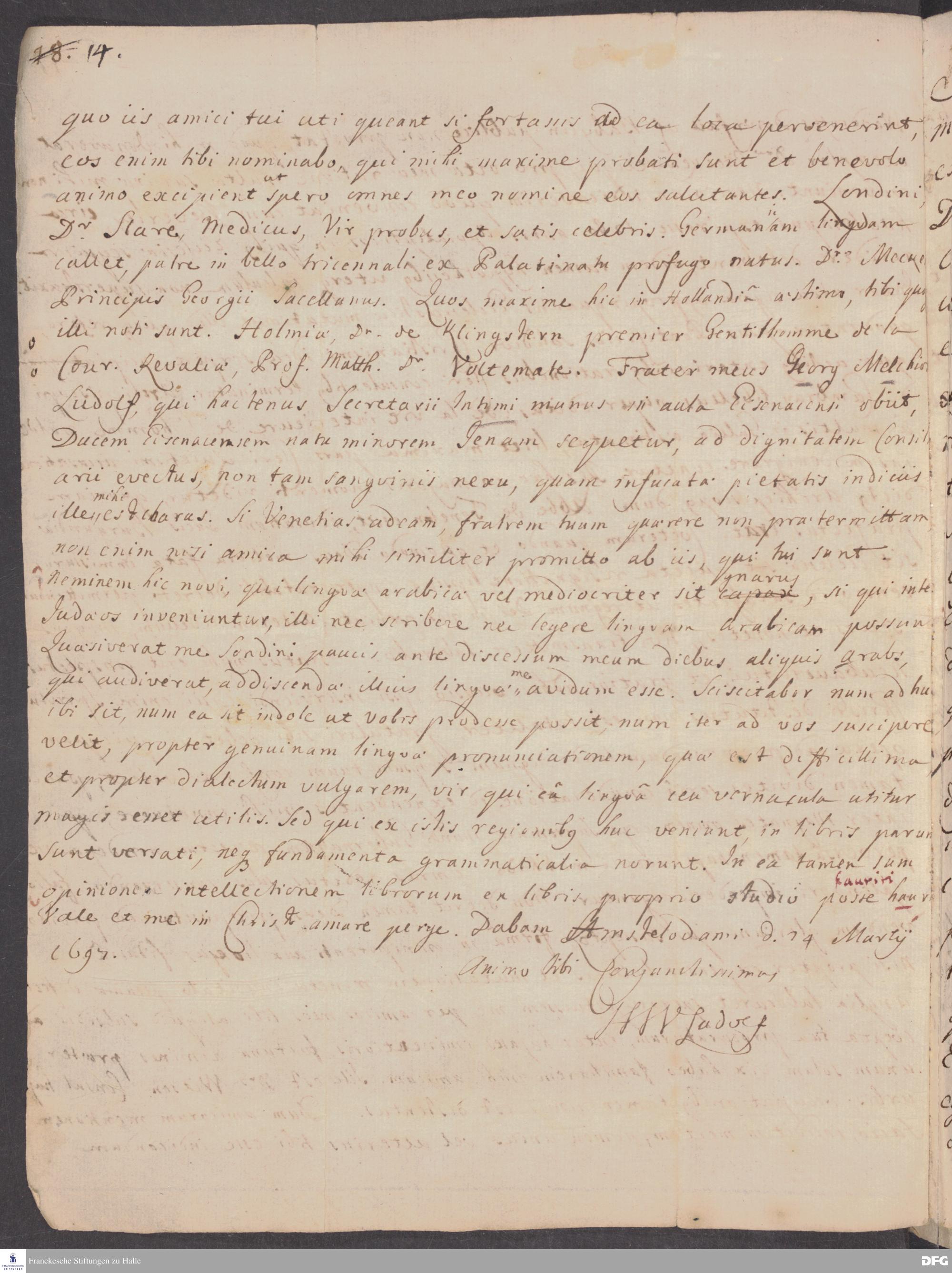 Brief von Heinrich Wilhelm Ludolf an August Hermann Francke.
