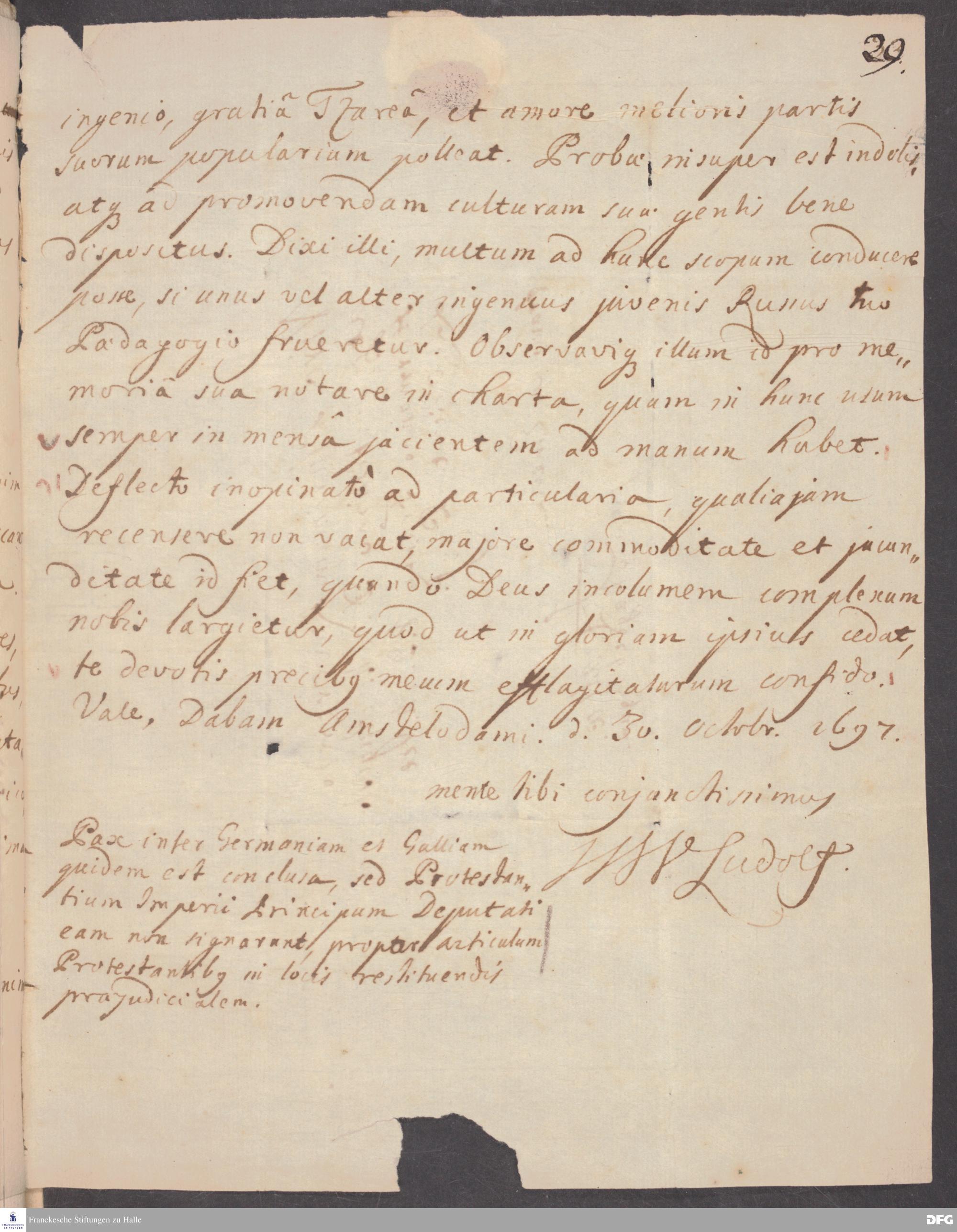 Brief von Heinrich Wilhelm Ludolf an August Hermann Francke.