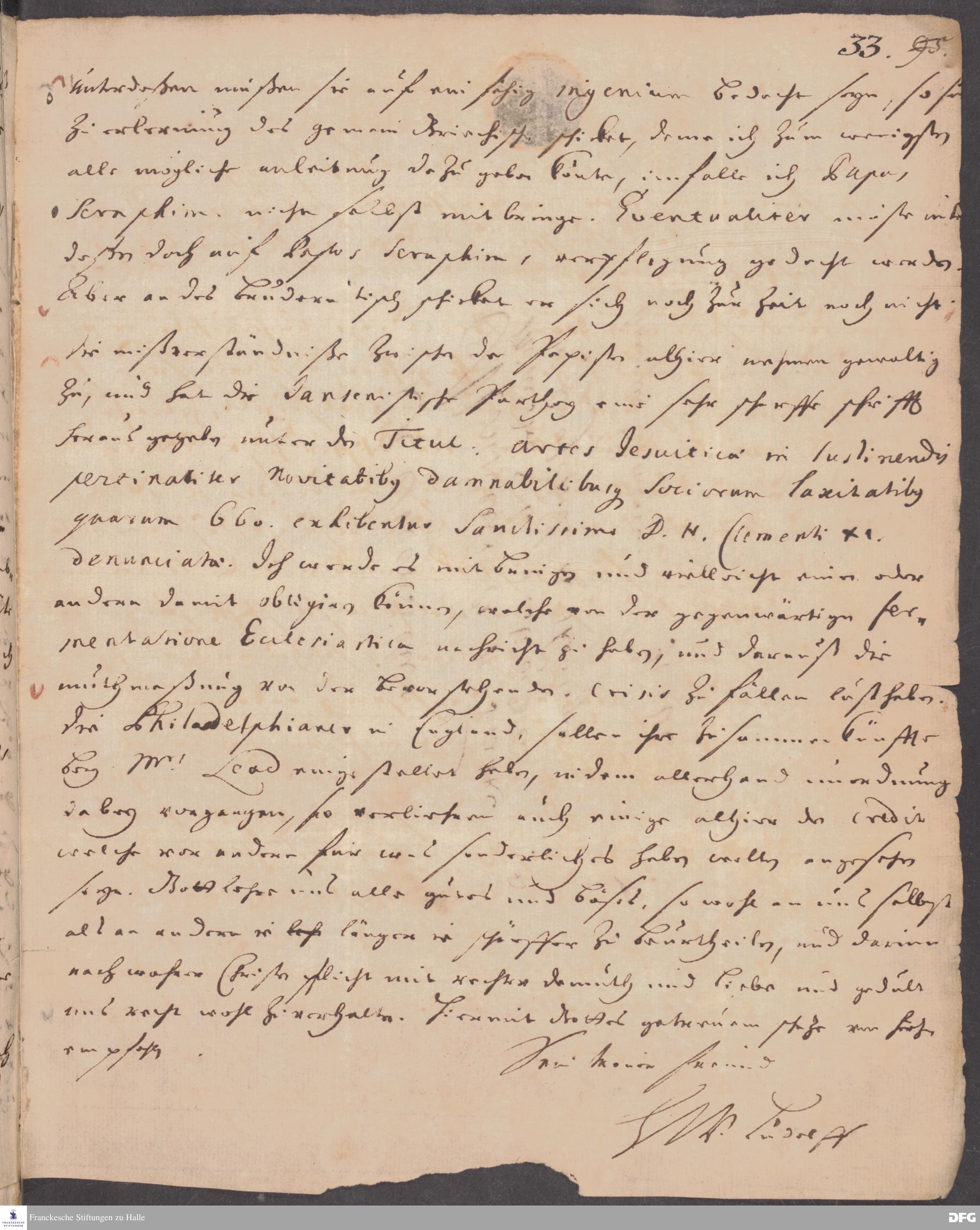 Brief von Heinrich Wilhelm Ludolf an August Hermann Francke.