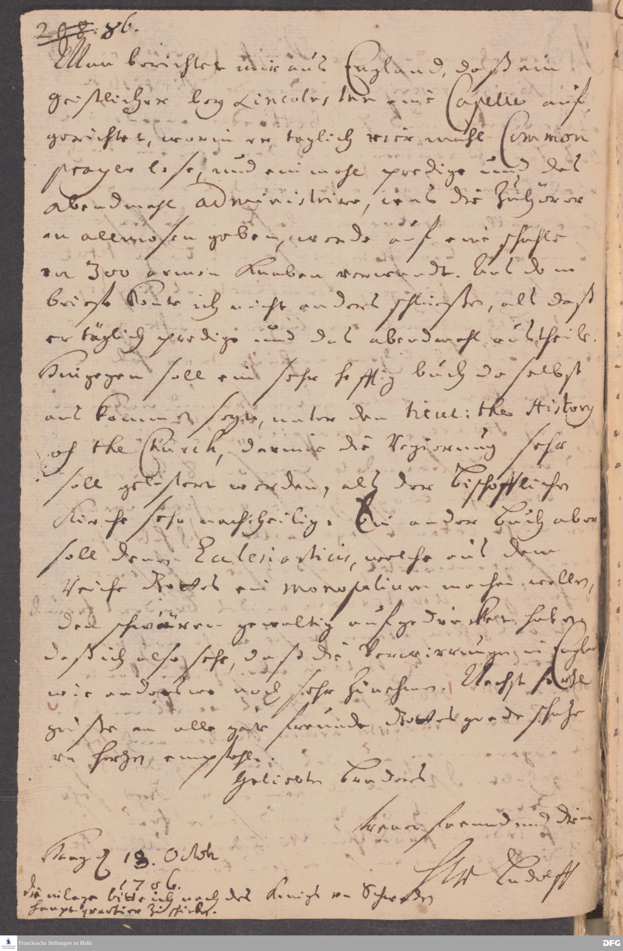 Brief von Heinrich Wilhelm Ludolf an August Hermann Francke.