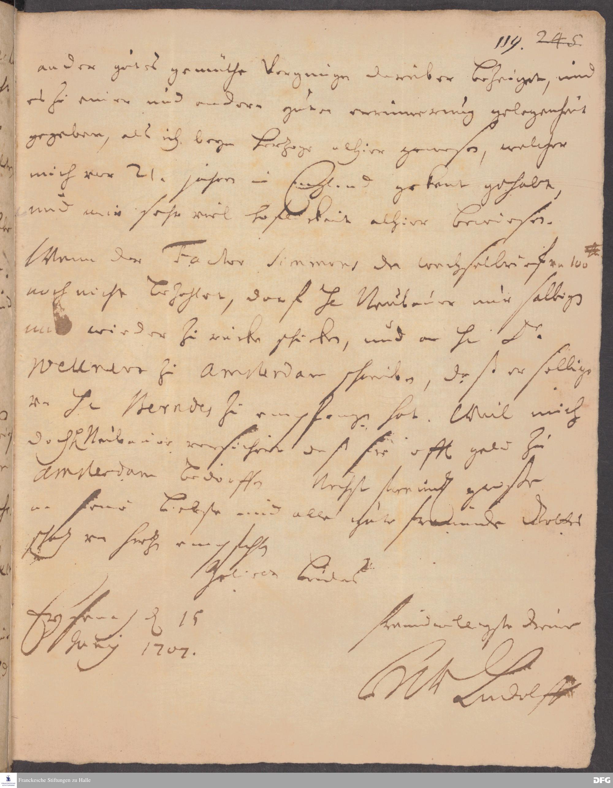 Brief von Heinrich Wilhelm Ludolf an August Hermann Francke.