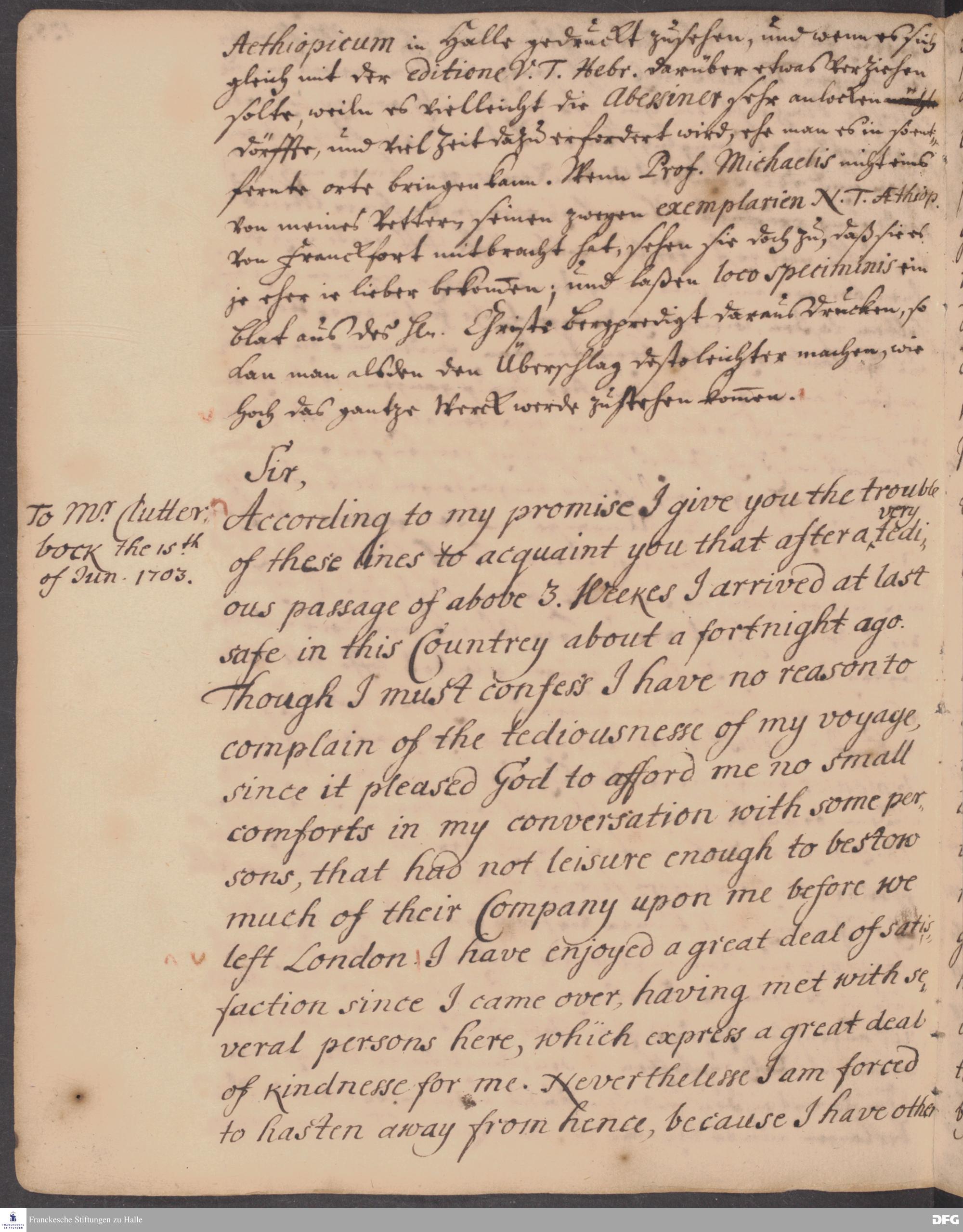Brief von Heinrich Wilhelm Ludolf an August Hermann Francke.