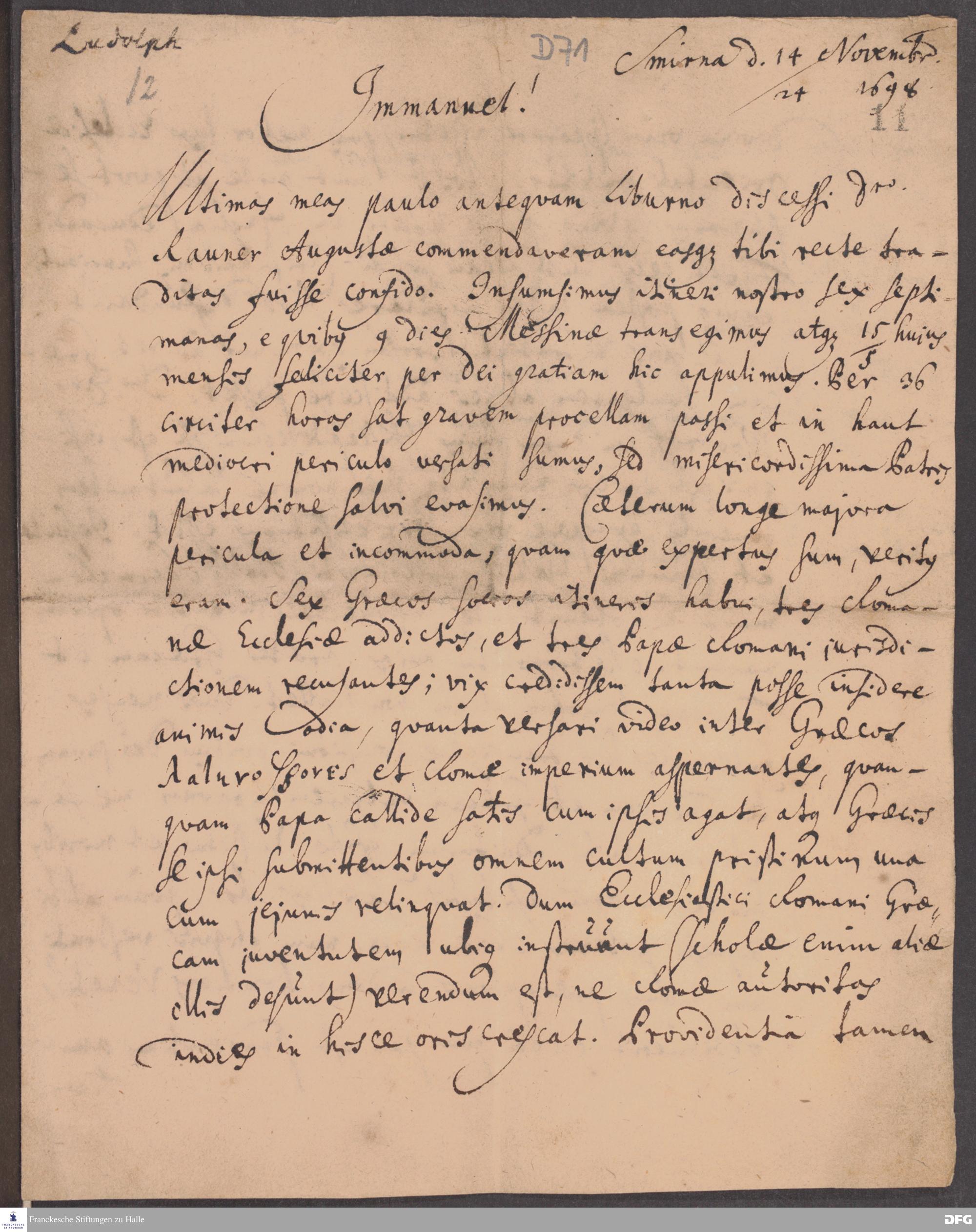 Brief von Heinrich Wilhelm Ludolf an [August Hermann Francke].