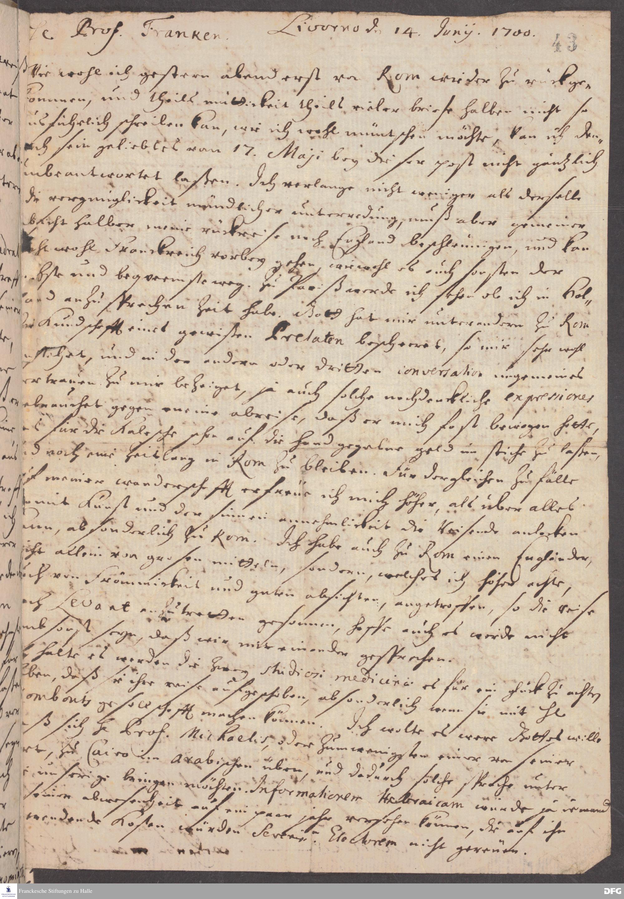 Brief von Heinrich Wilhelm Ludolf an August Hermann Francke.