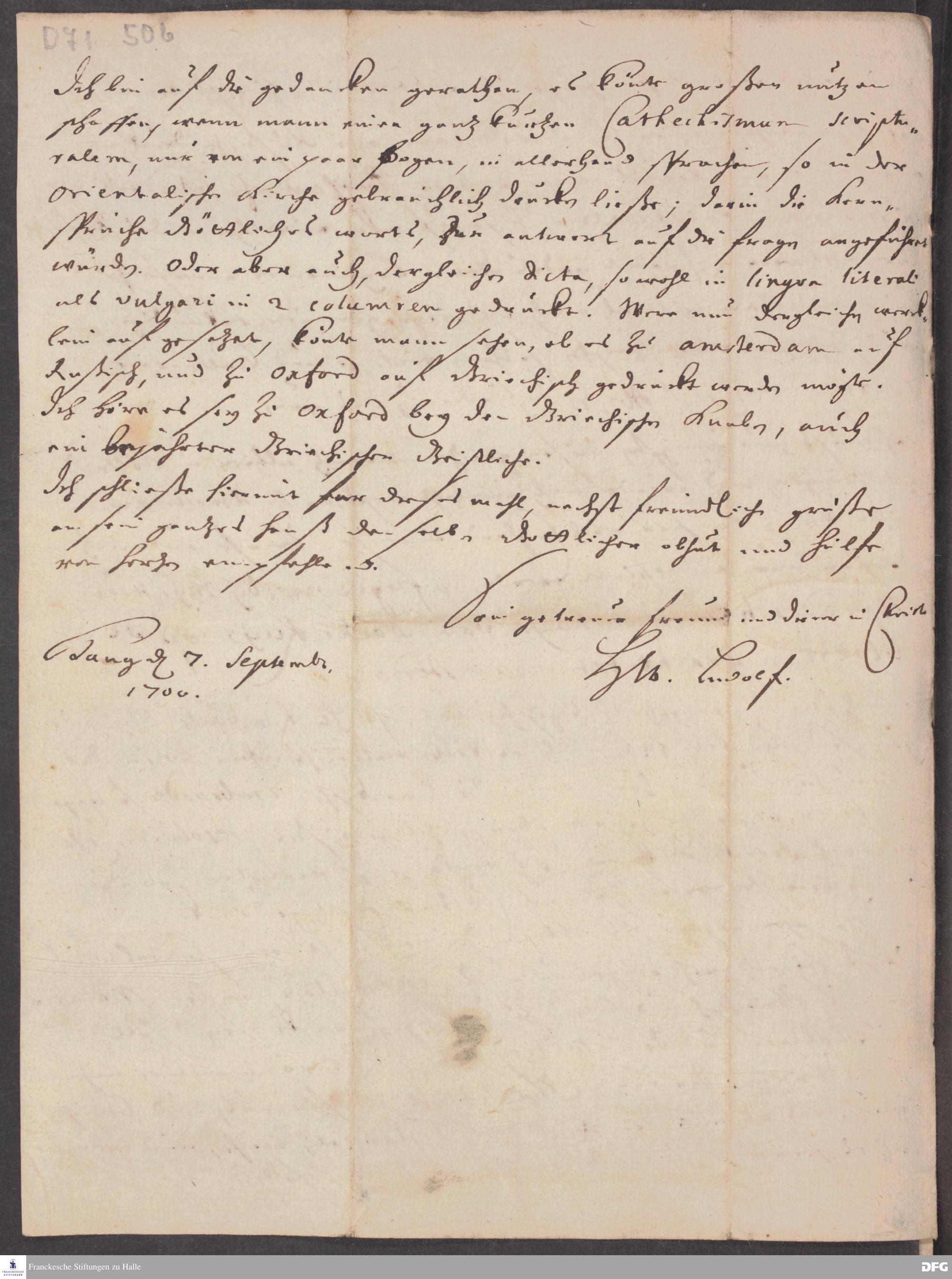 Brief von Heinrich Wilhelm Ludolf an August Hermann Francke.