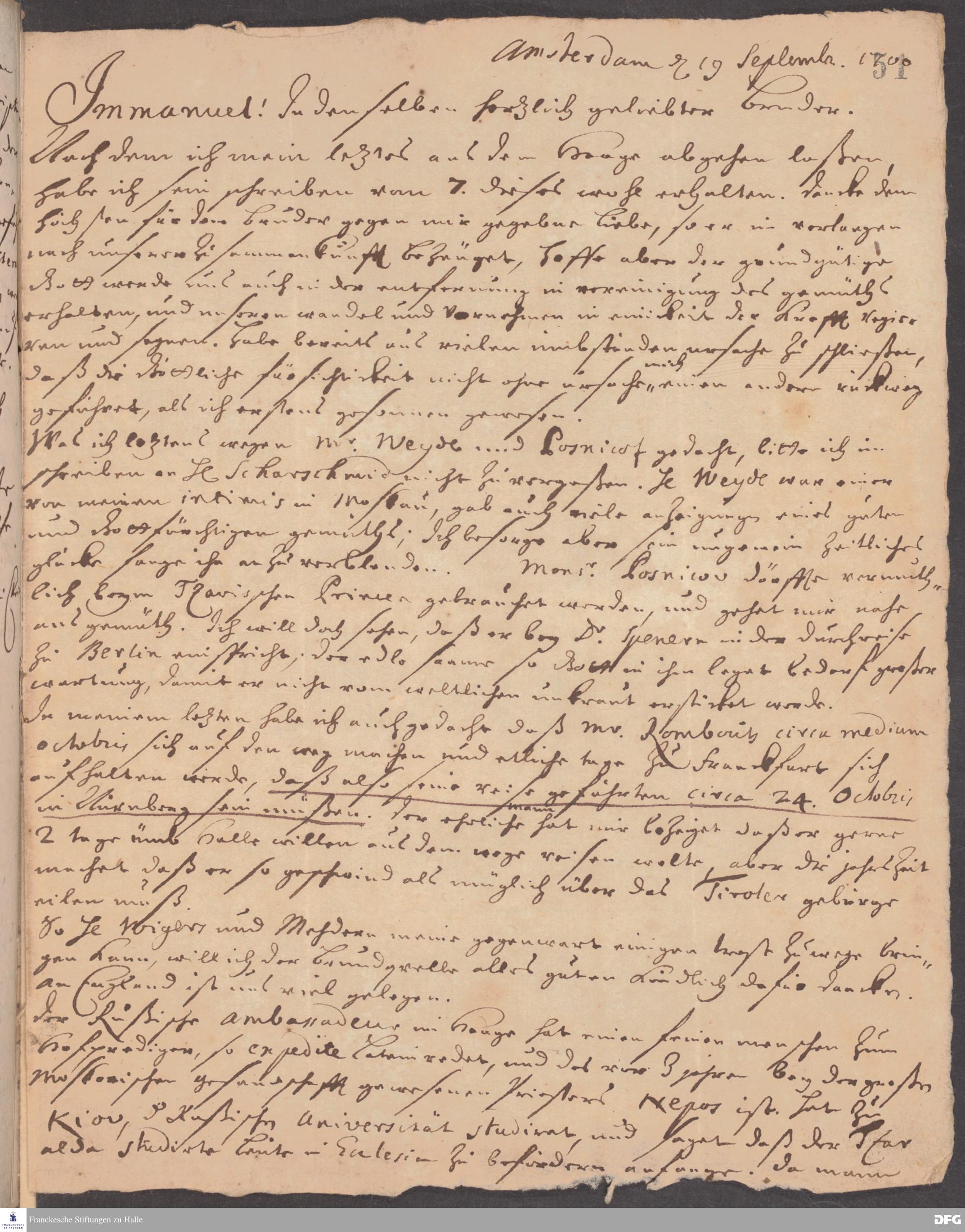 Brief von Heinrich Wilhelm Ludolf an August Hermann Francke.