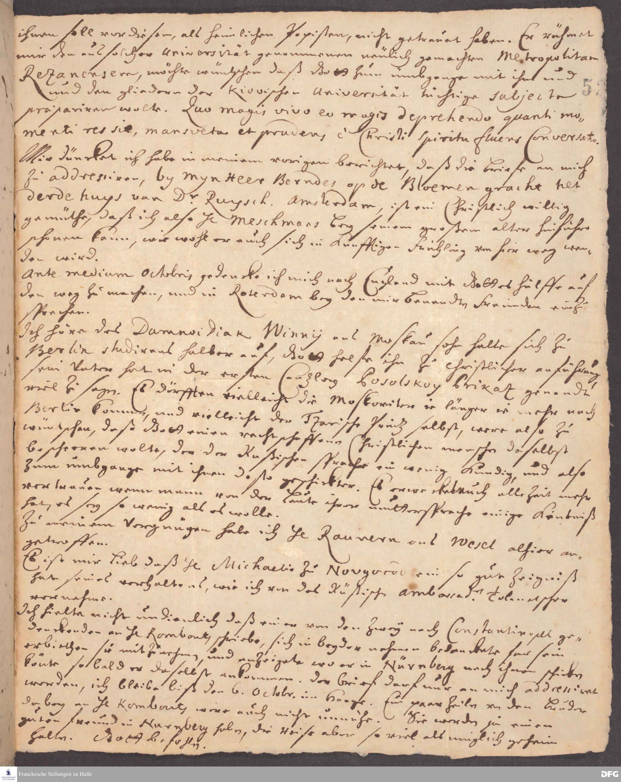 Brief von Heinrich Wilhelm Ludolf an August Hermann Francke.