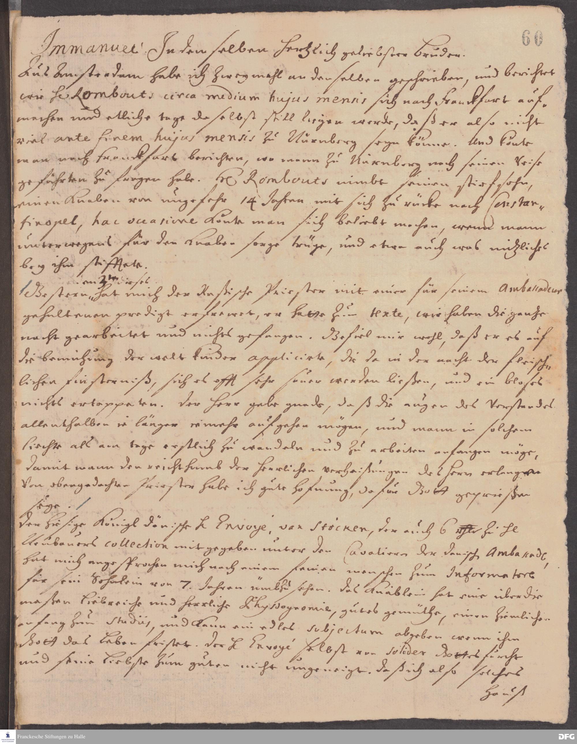 Brief von Heinrich Wilhelm Ludolf an August Hermann Francke.