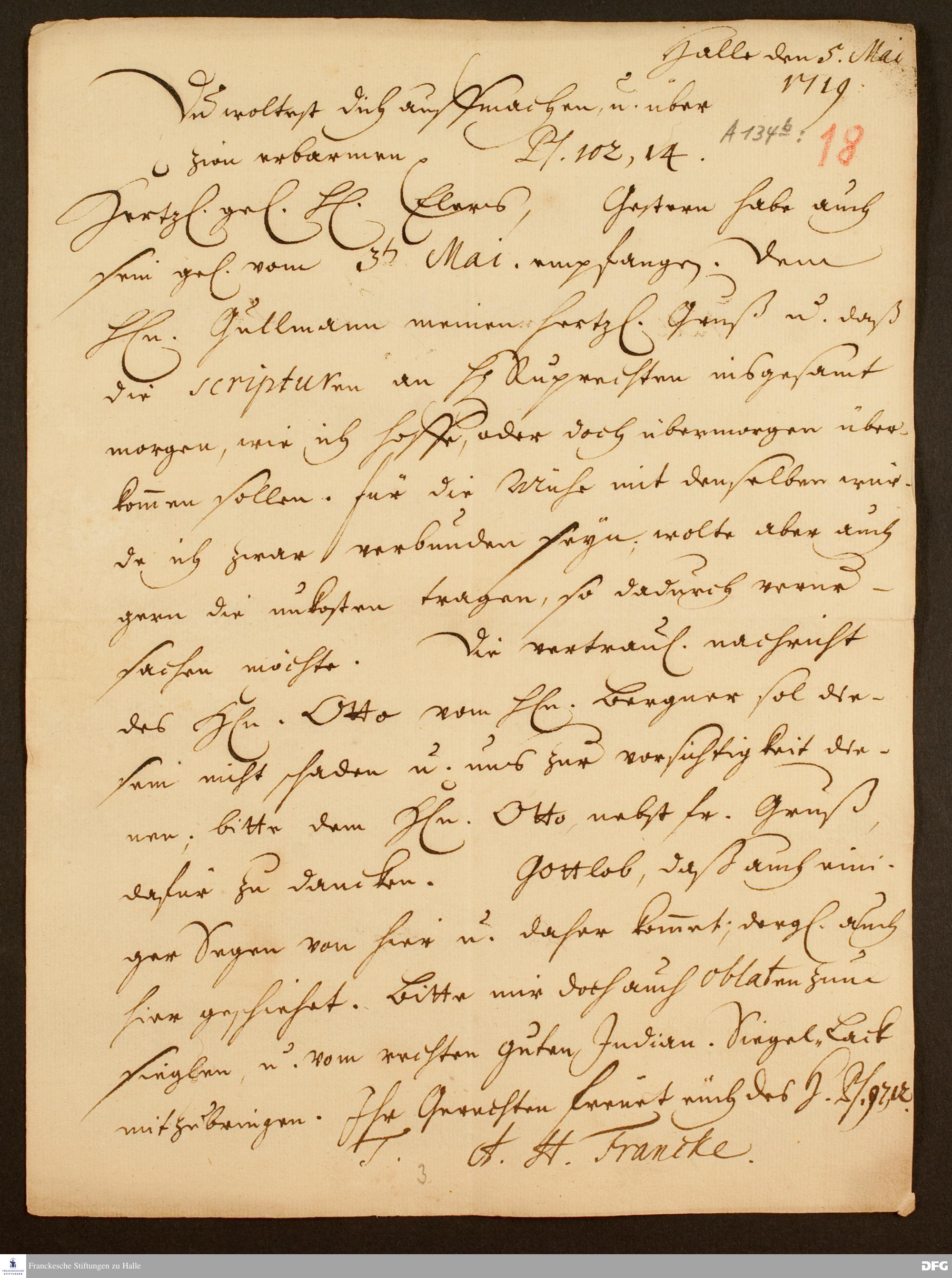 Brief von August Hermann Francke an Heinrich Julius Elers.