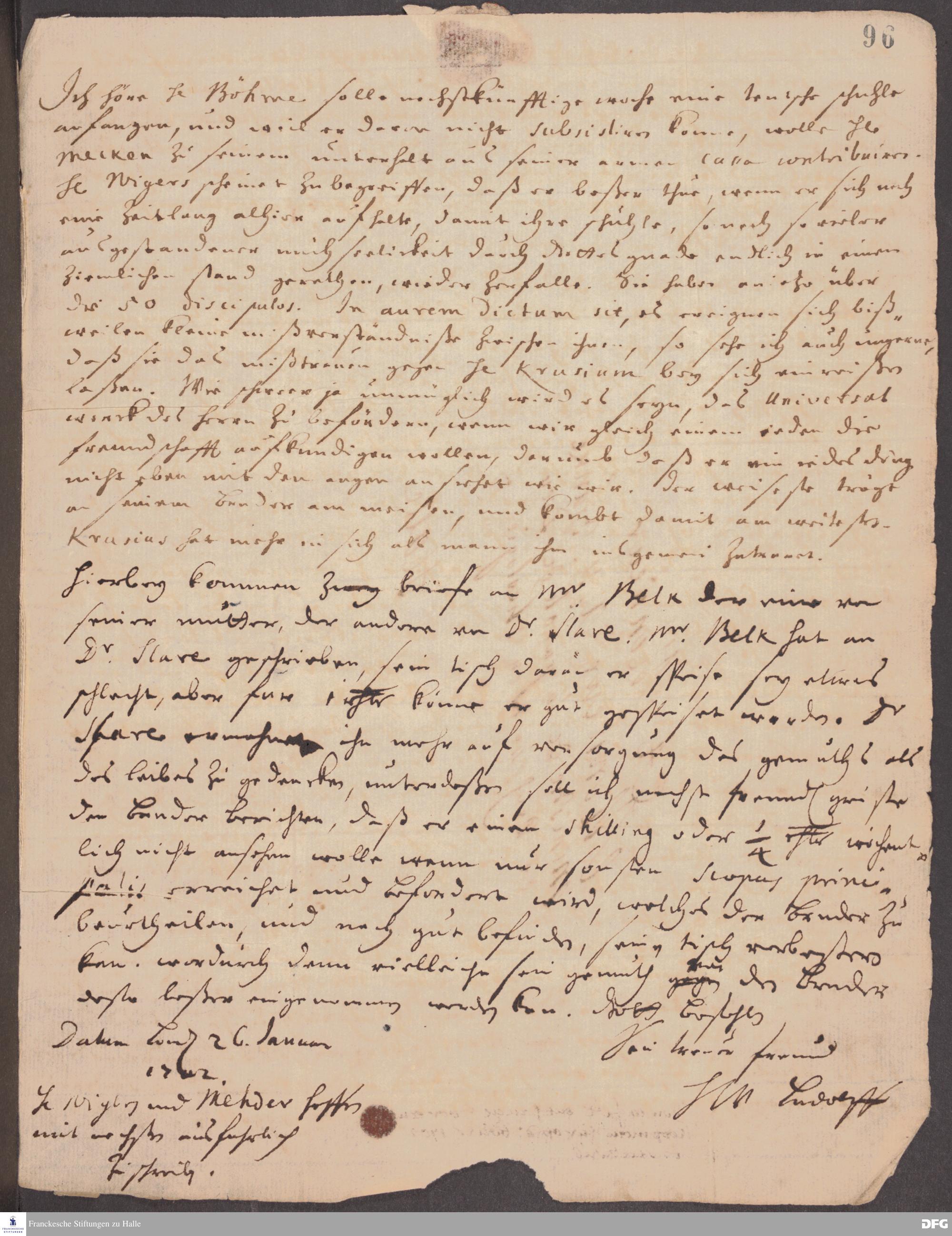 Brief von Heinrich Wilhelm Ludolf an August Hermann Francke.