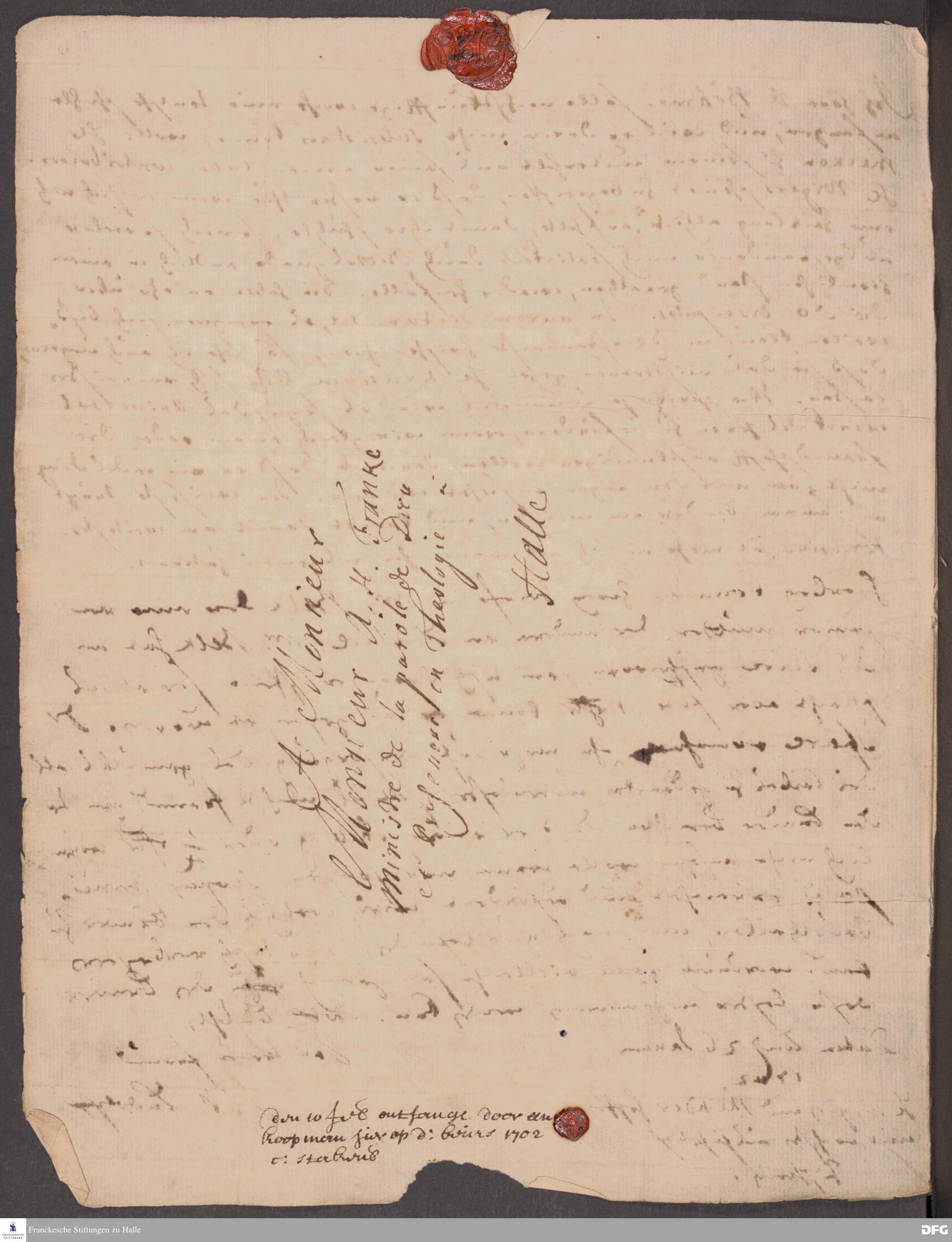 Brief von Heinrich Wilhelm Ludolf an August Hermann Francke.