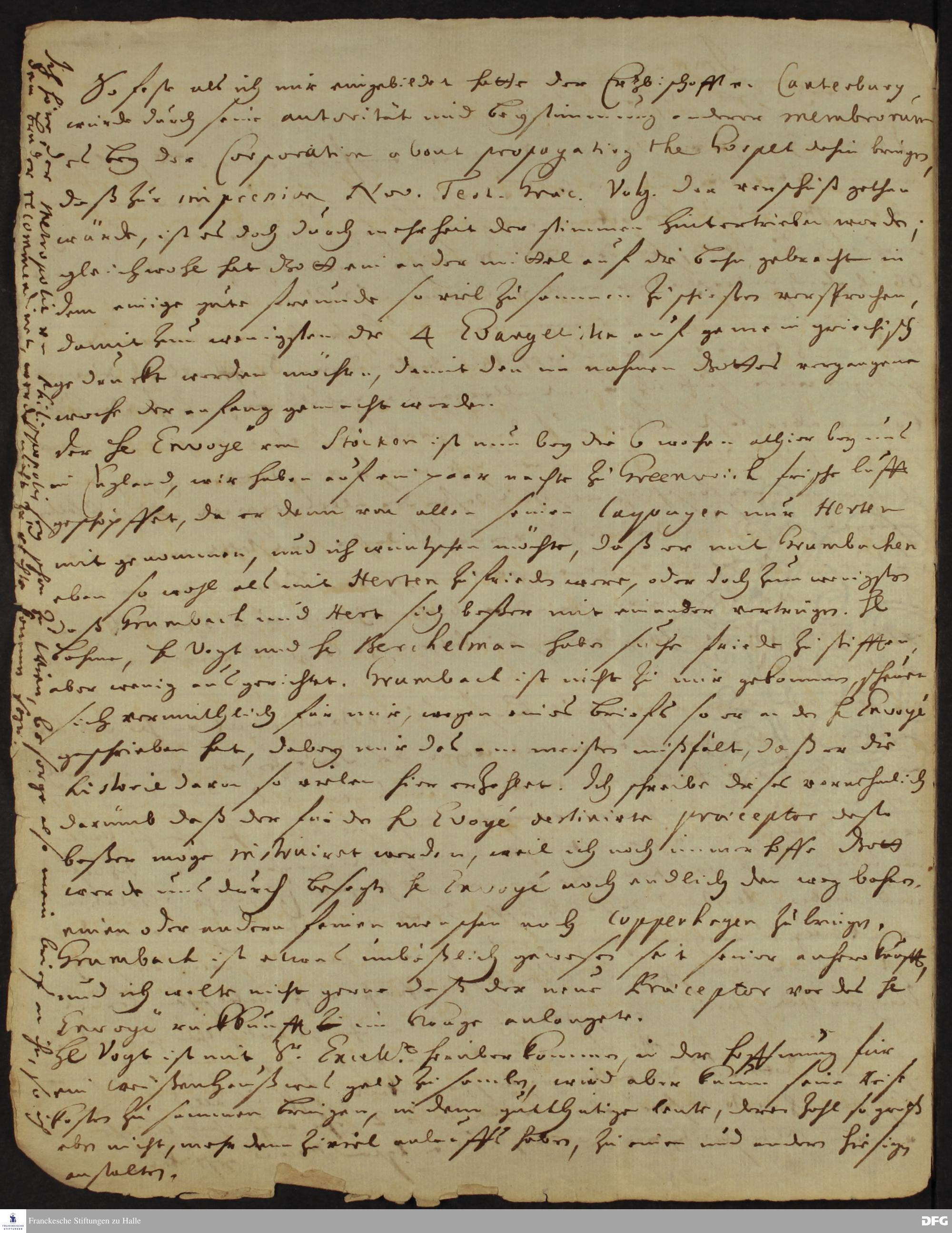 Brief von Heinrich Wilhelm Ludolf an August Hermann Francke.