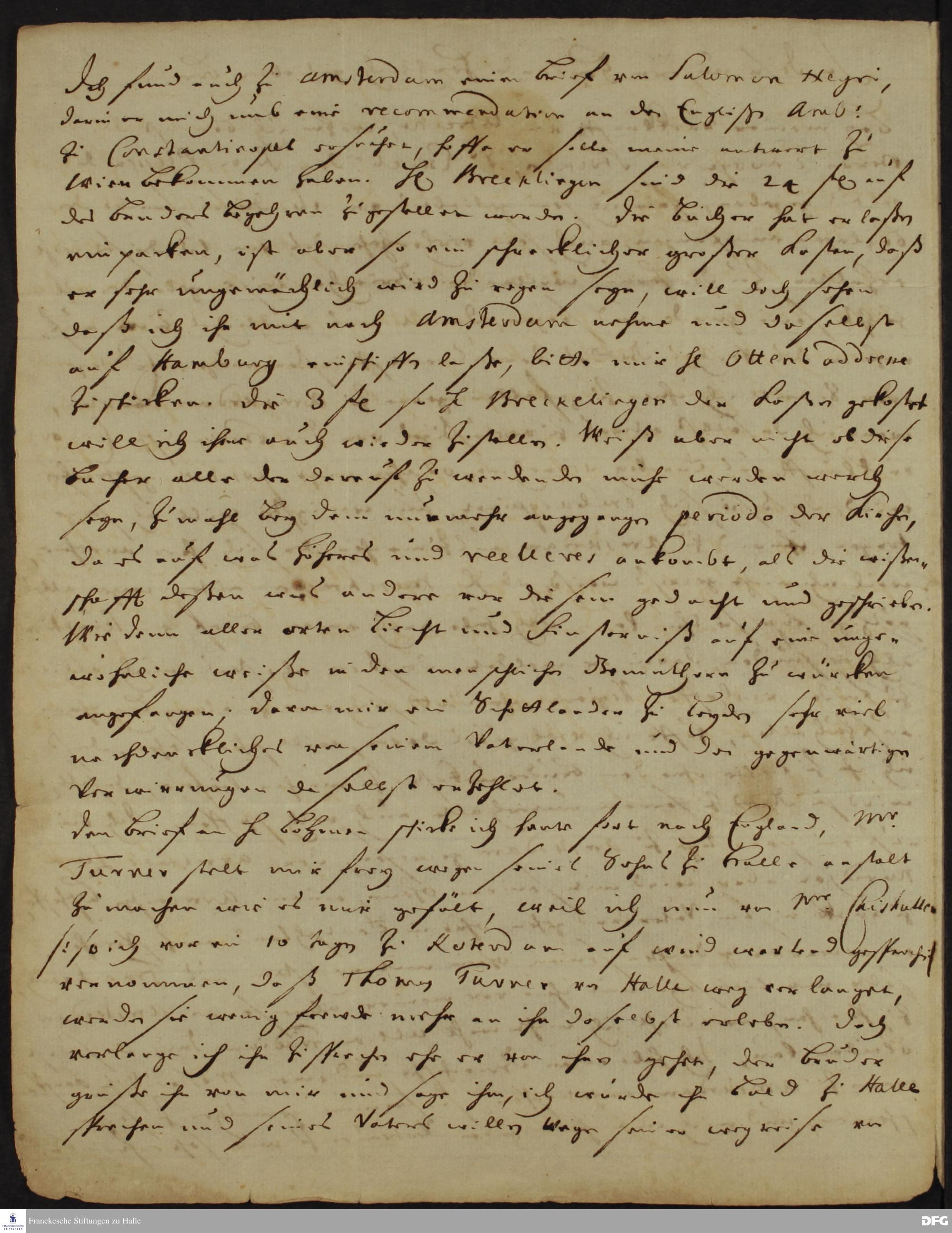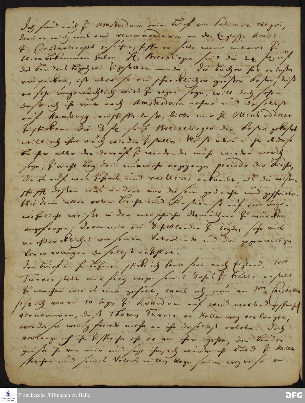 Brief von Heinrich Wilhelm Ludolf an August Hermann Francke.