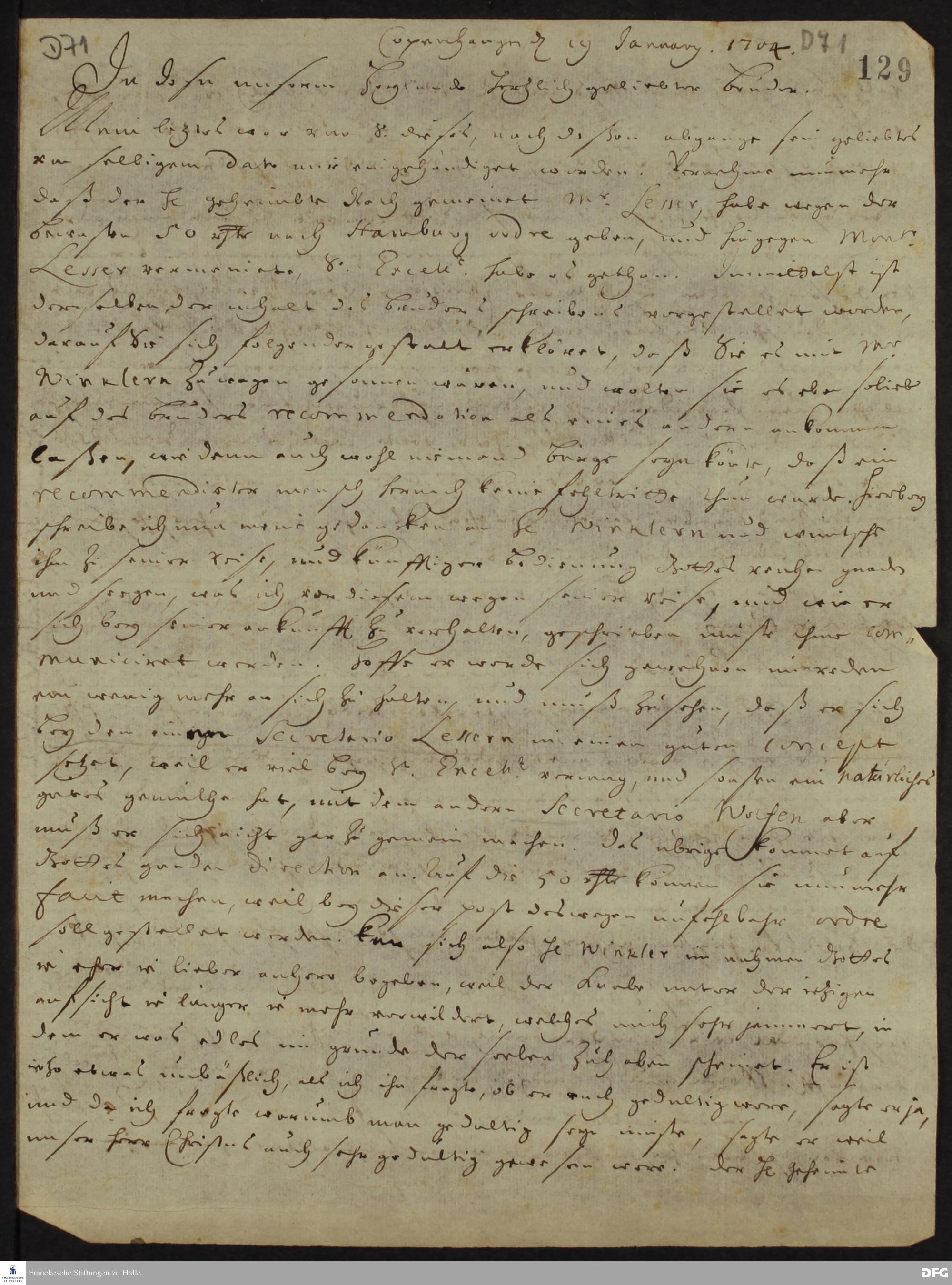 Brief von Heinrich Wilhelm Ludolf an August Hermann Francke.