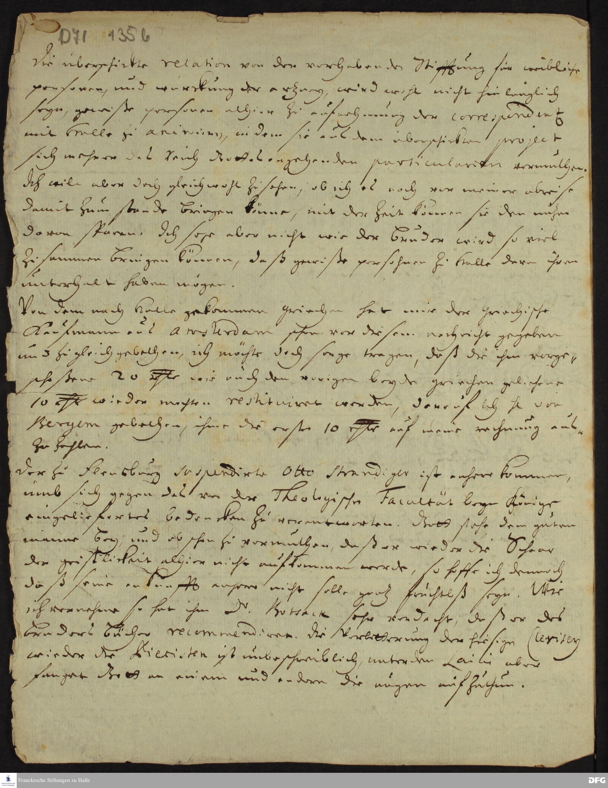 Brief von Heinrich Wilhelm Ludolf an August Hermann Francke.