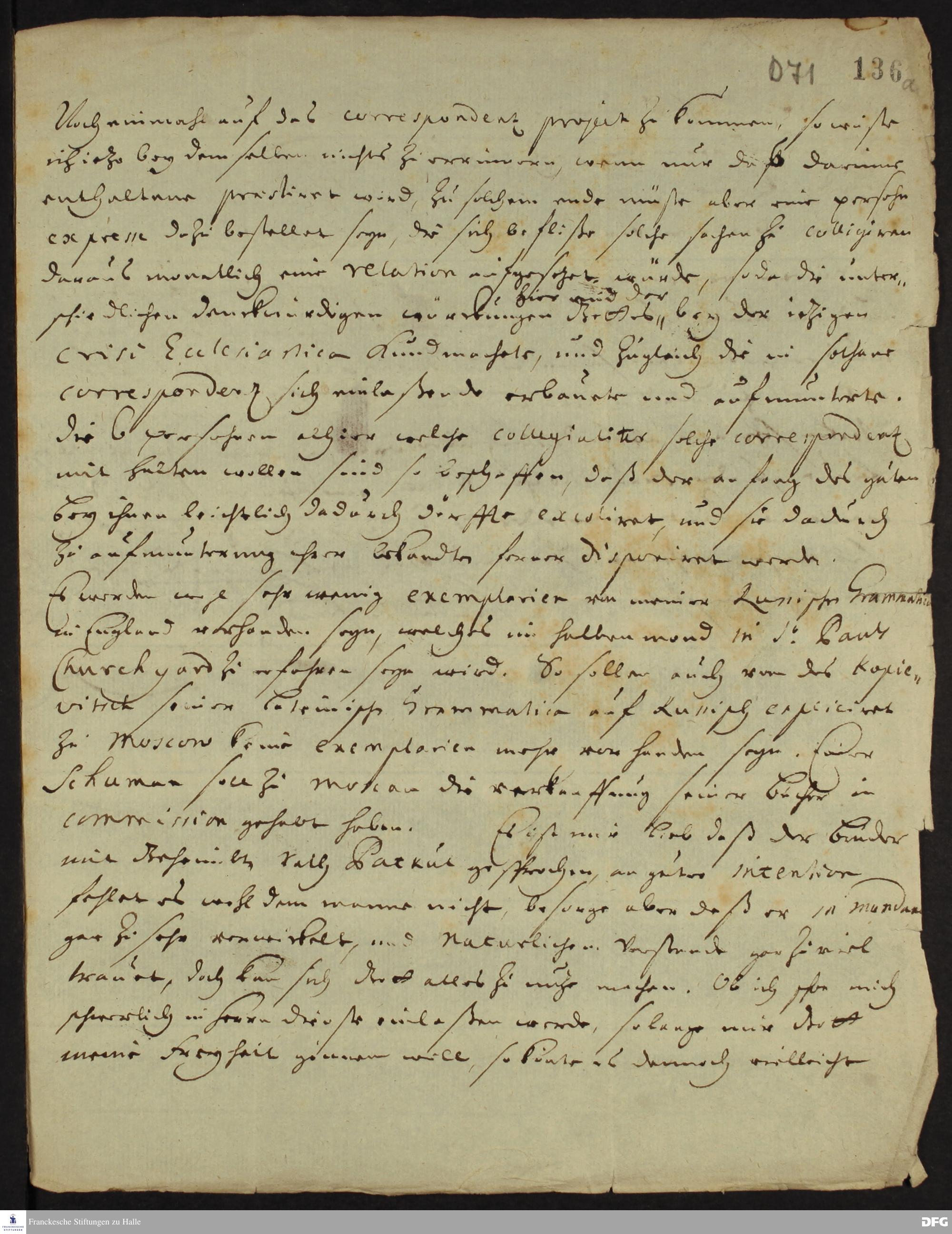 Brief von Heinrich Wilhelm Ludolf an August Hermann Francke.
