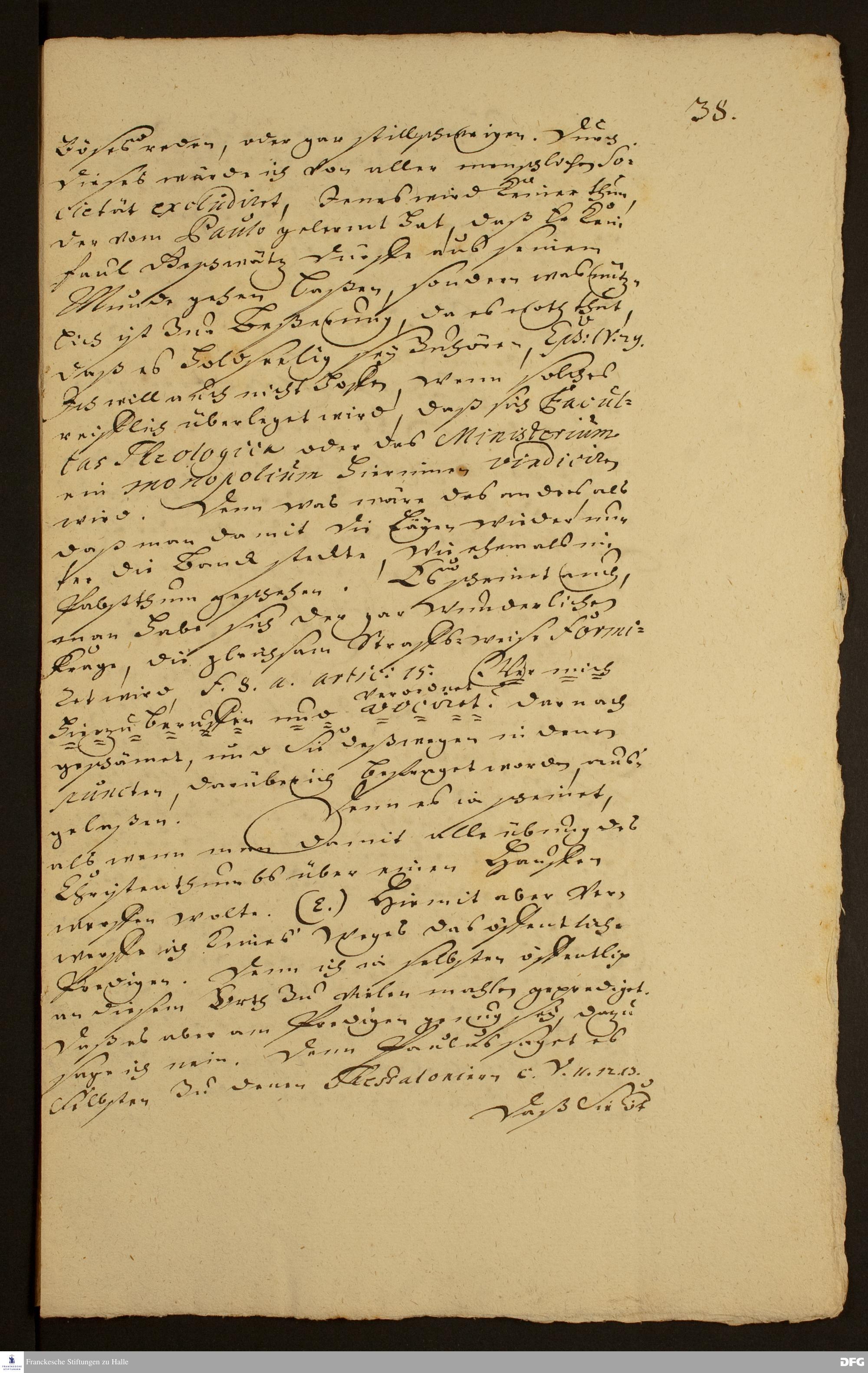 Brief von August Hermann Francke an Johann Georg III., Kurfürst von Sachsen.