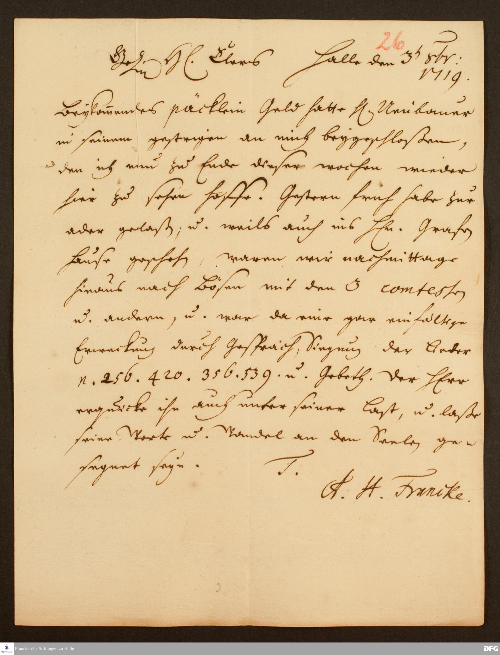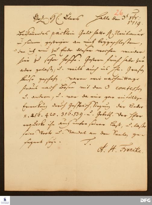 Brief von August Hermann Francke an Heinrich Julius Elers.