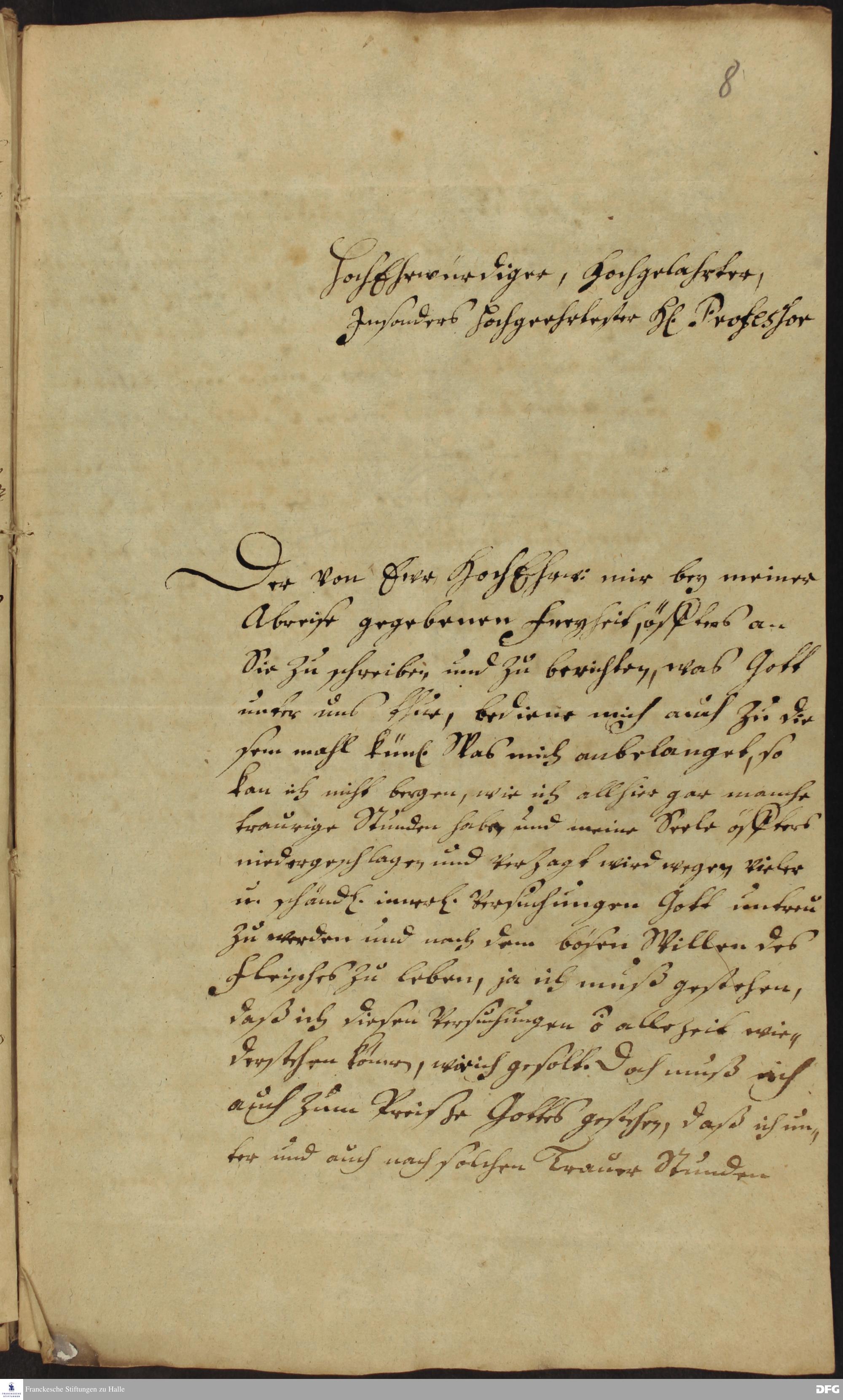 Brief von Friedrich Bernhard Blaufuss an August Hermann Francke.
