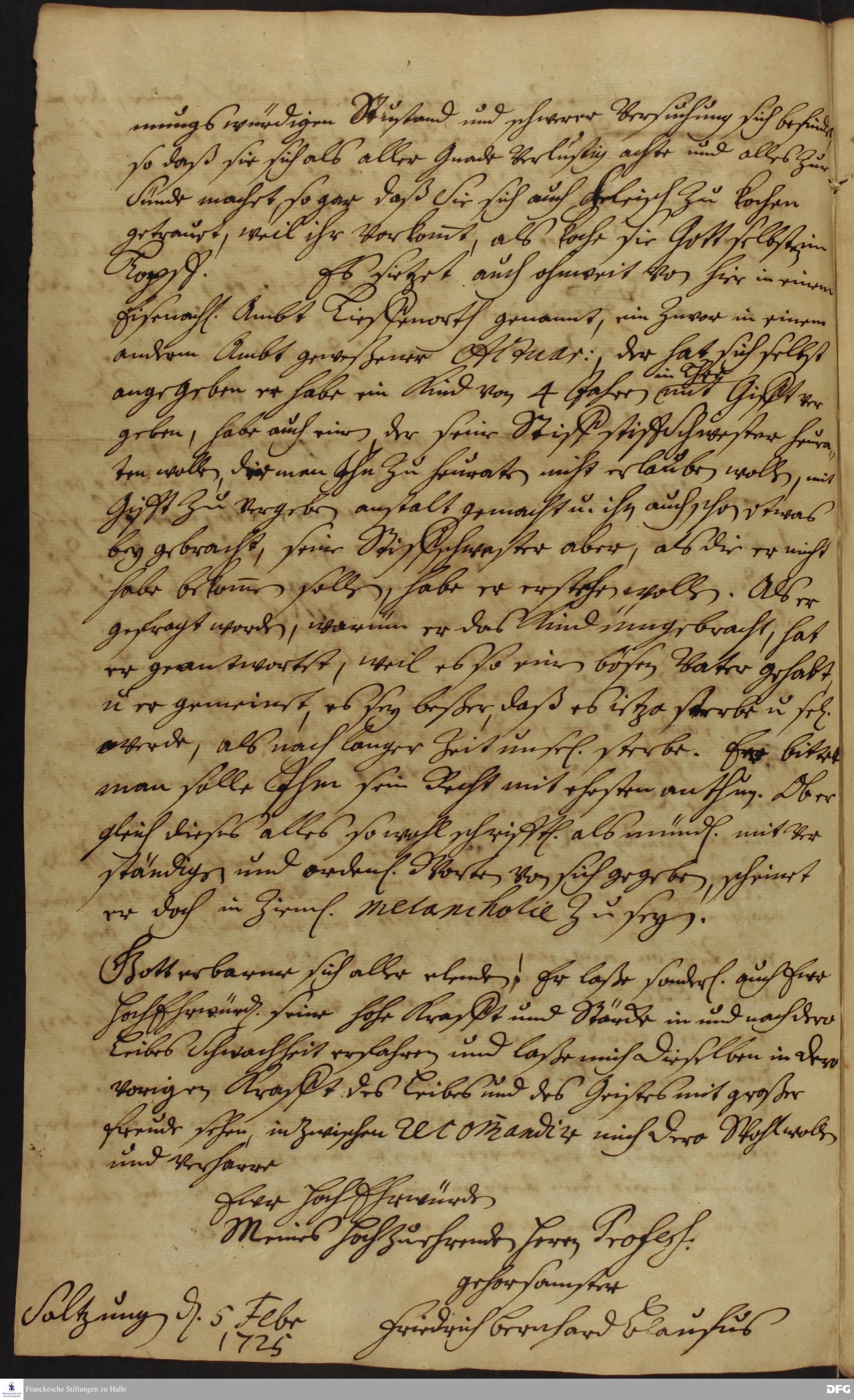 Brief von Friedrich Bernhard Blaufuss an August Hermann Francke.