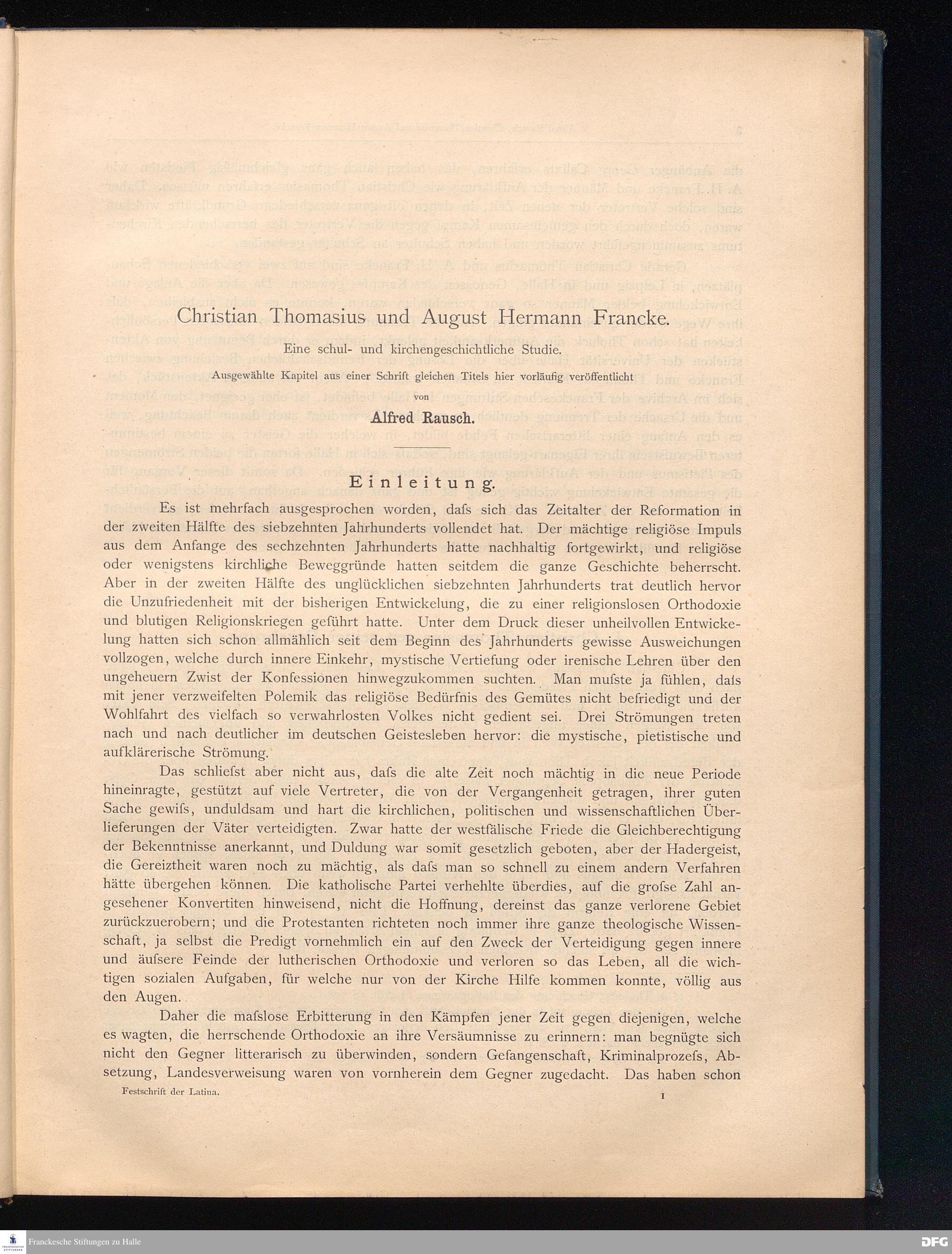 Festschrift zur zweihundertjährigen Jubelfeier der Franckeschen Stiftungen und der Lateinischen Hauptschule am 30. Juni und 1. Juli 1898.