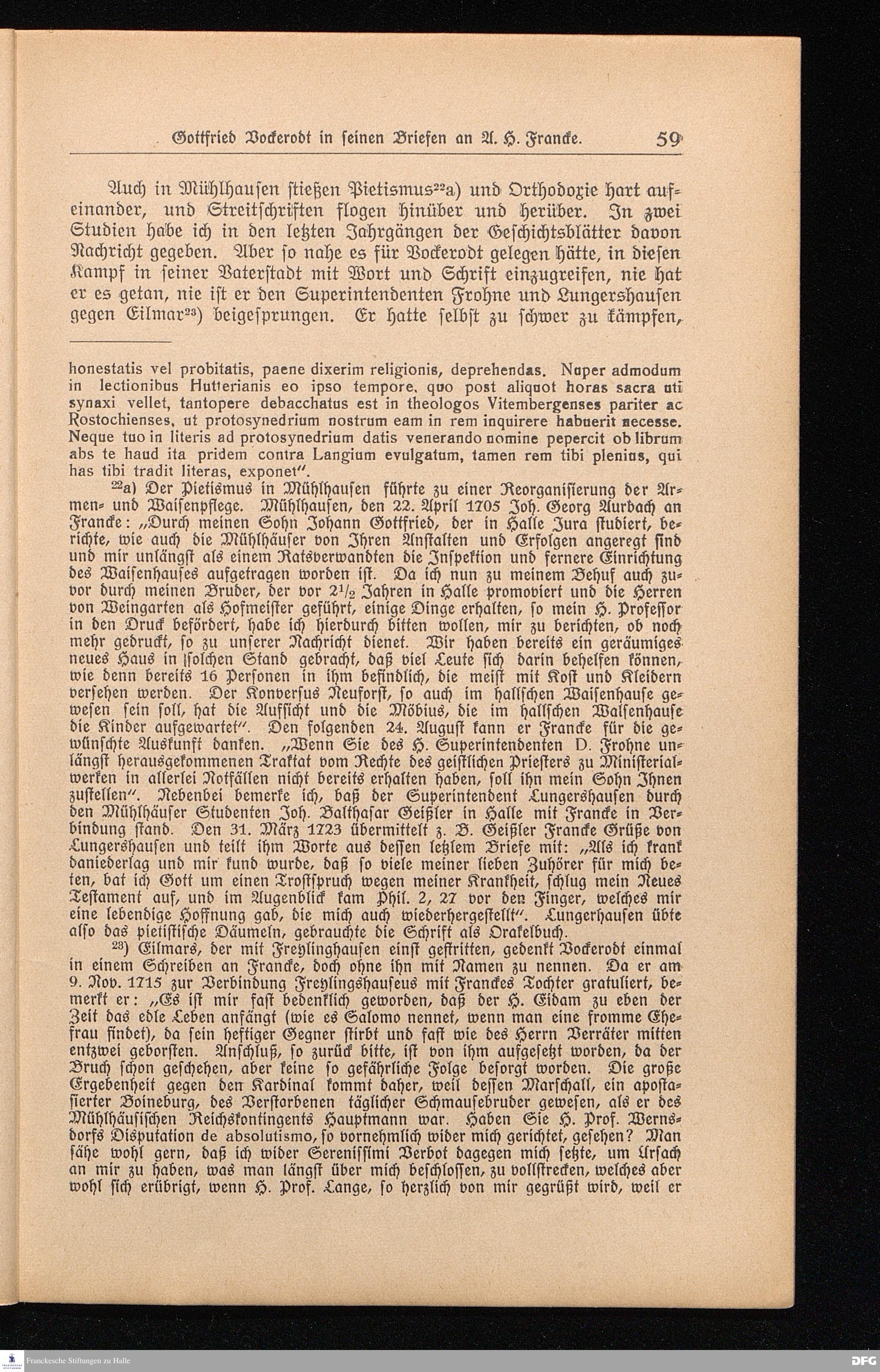 Gottfried Vockerodt in seinen Briefen an A. H. Francke.