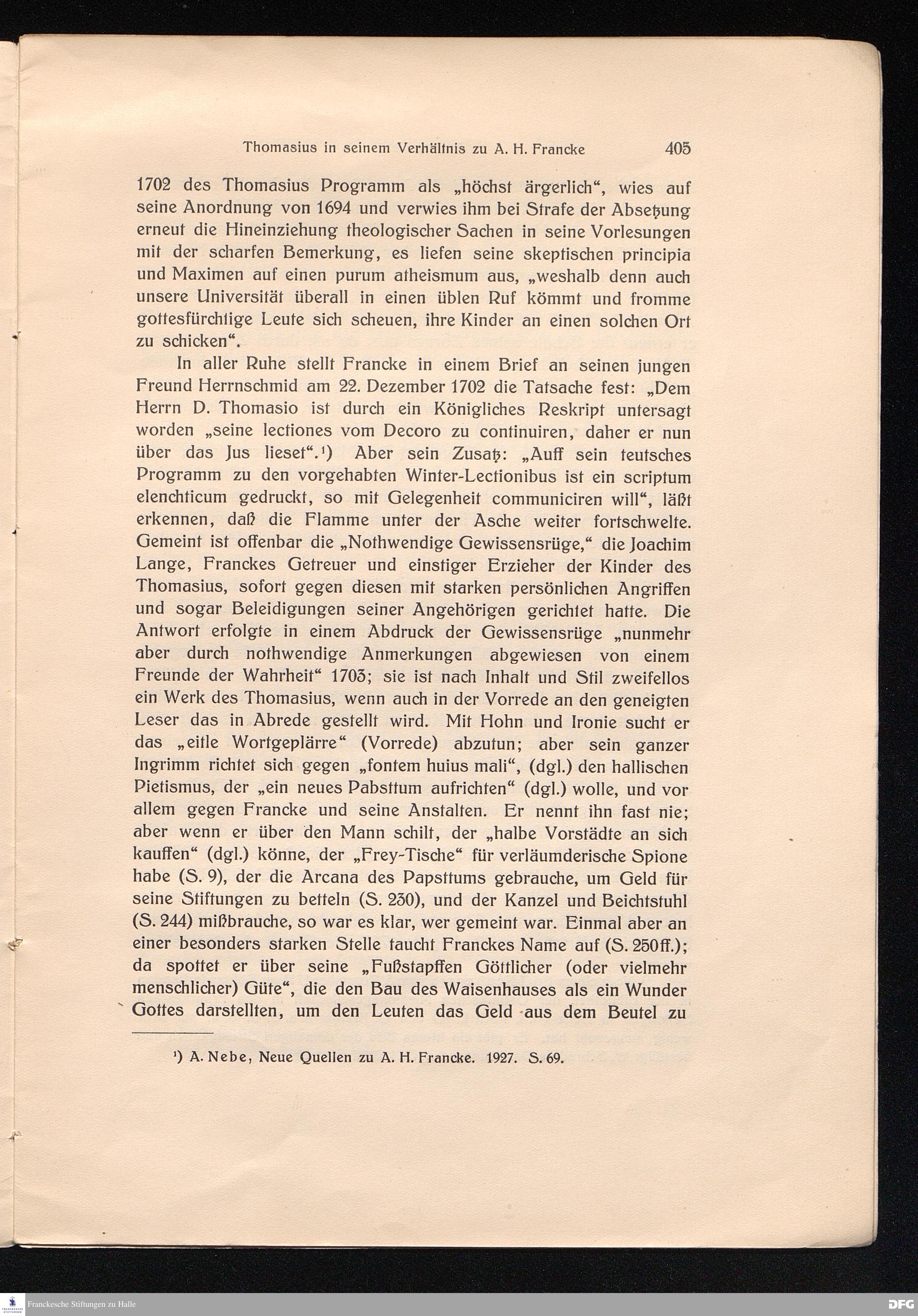 Thomasius in seinem Verhältnis zu A. H. Francke.