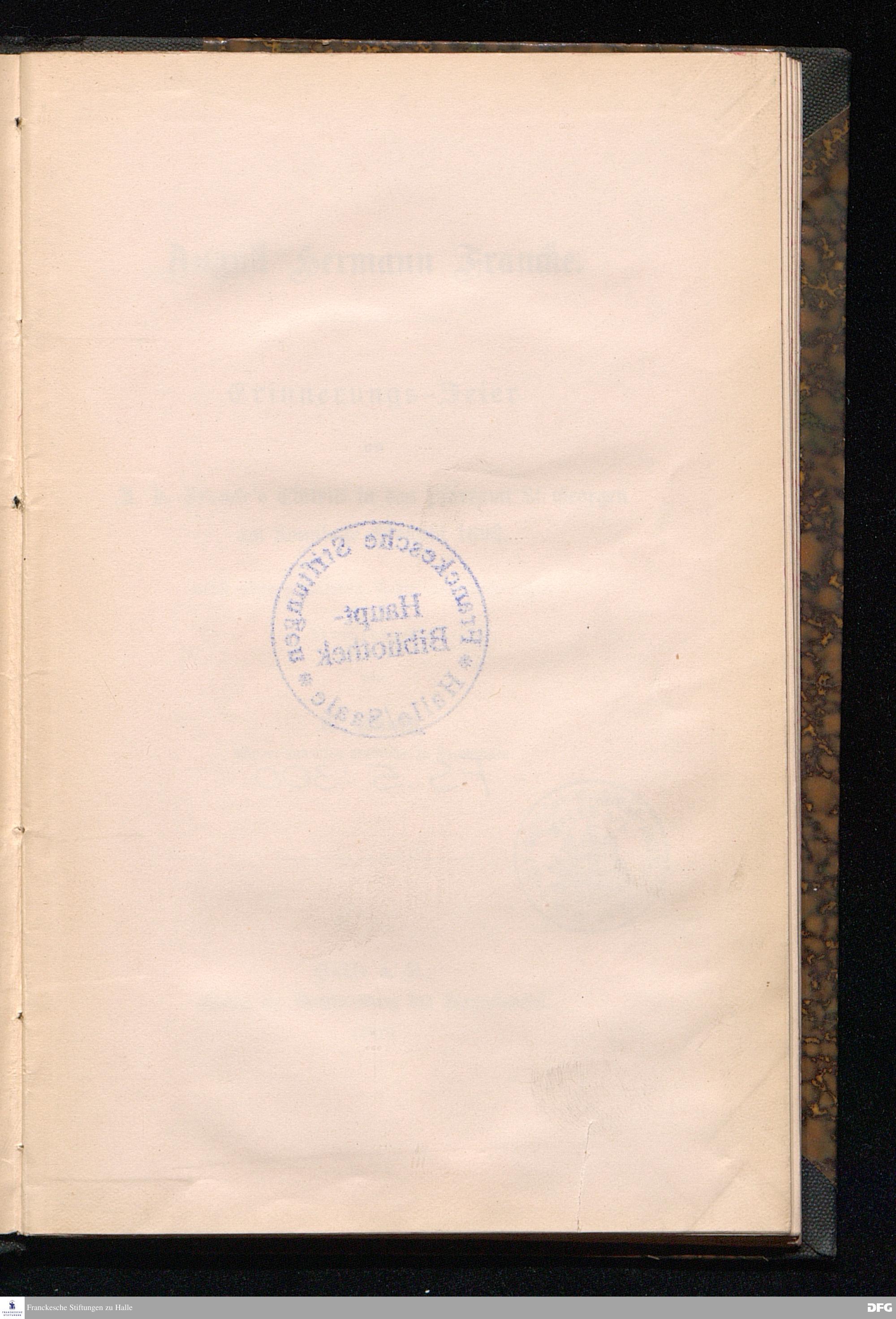 August Hermann Francke. Erinnerungs-Feier an A. H. Francke's Eintritt in das Pfarramt St.Georgen am Sonntage Estomihi 1692. Nebst allen gehaltenen Reden und Ansprachen.
