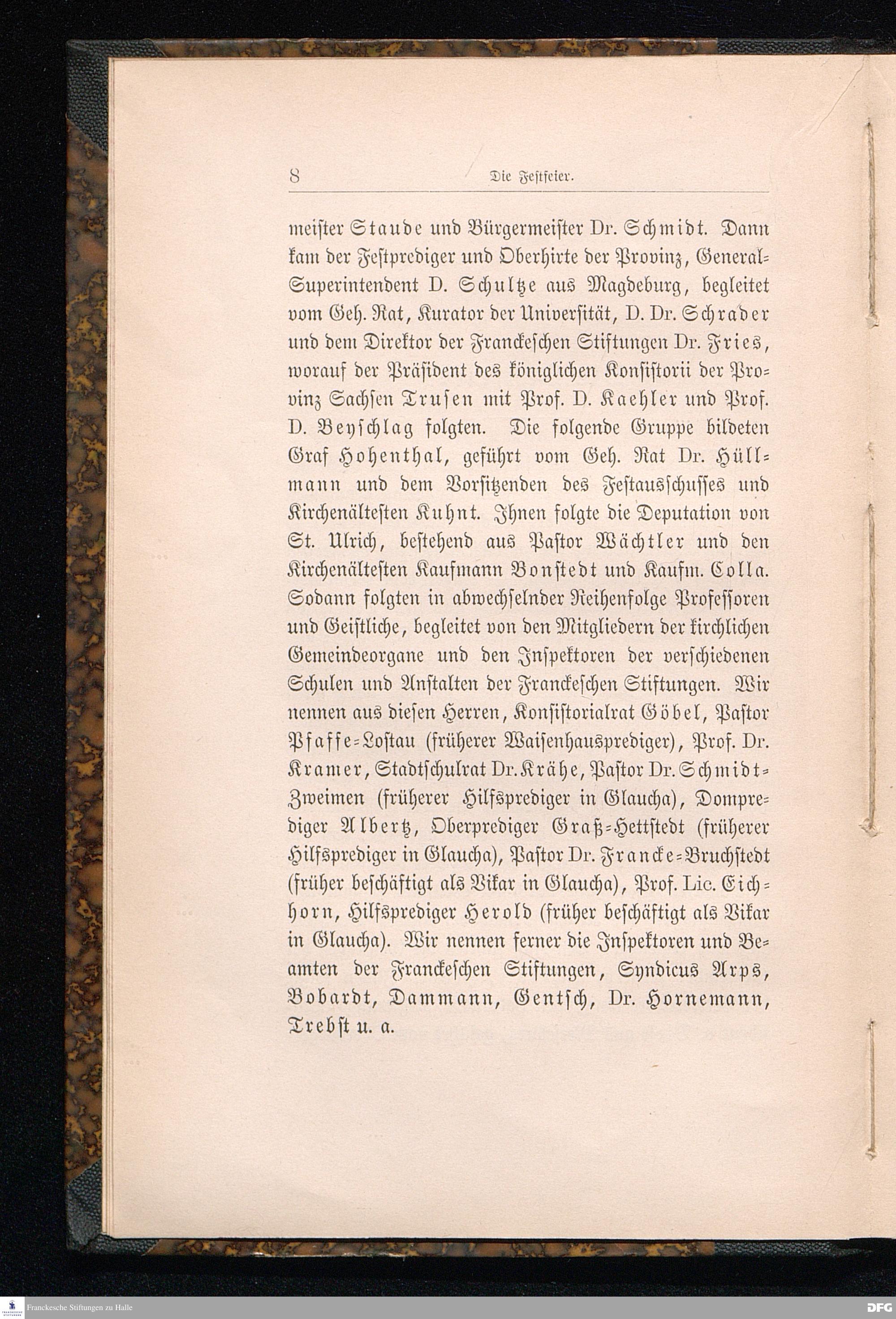 August Hermann Francke. Erinnerungs-Feier an A. H. Francke's Eintritt in das Pfarramt St.Georgen am Sonntage Estomihi 1692. Nebst allen gehaltenen Reden und Ansprachen.