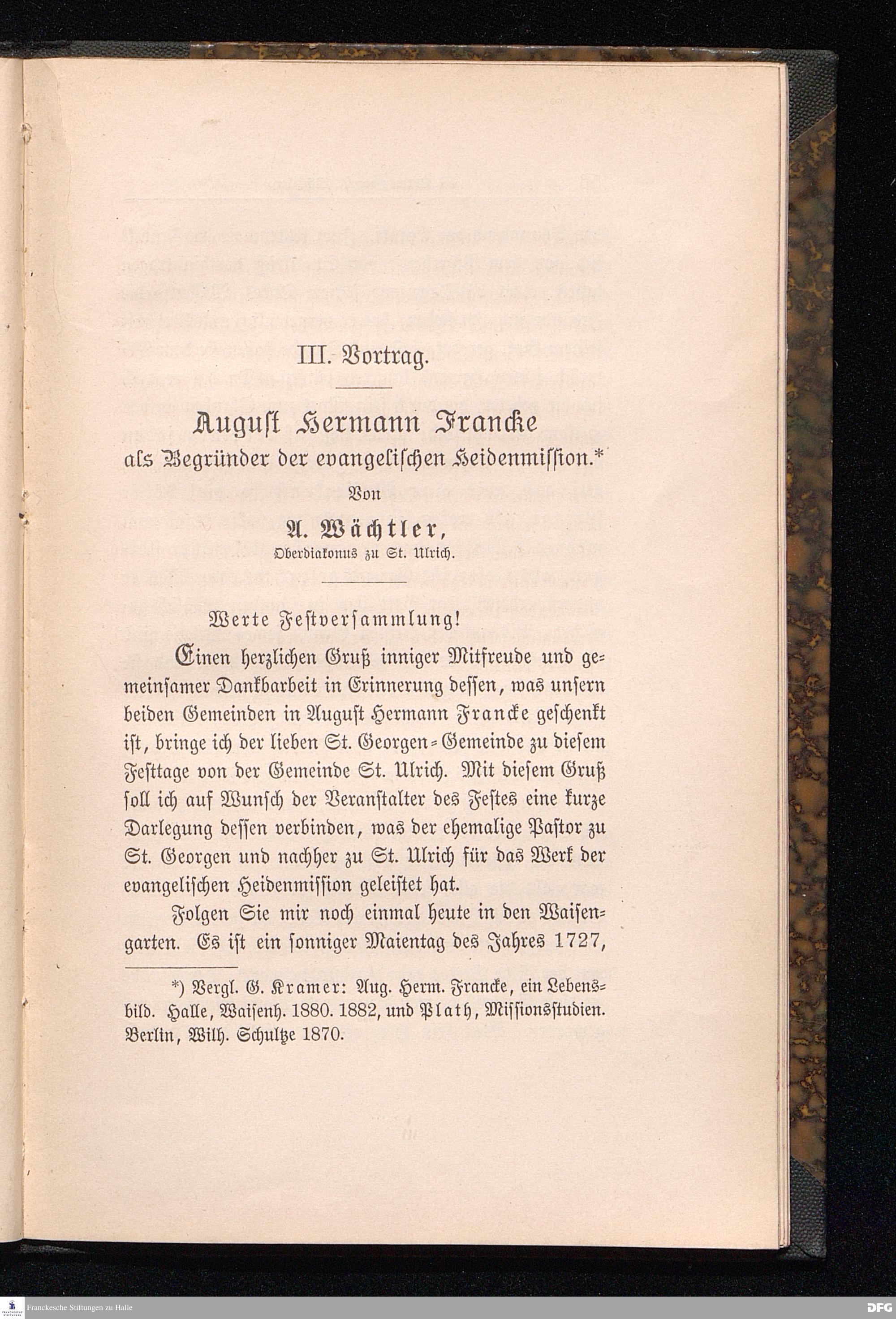 August Hermann Francke. Erinnerungs-Feier an A. H. Francke's Eintritt in das Pfarramt St.Georgen am Sonntage Estomihi 1692. Nebst allen gehaltenen Reden und Ansprachen.