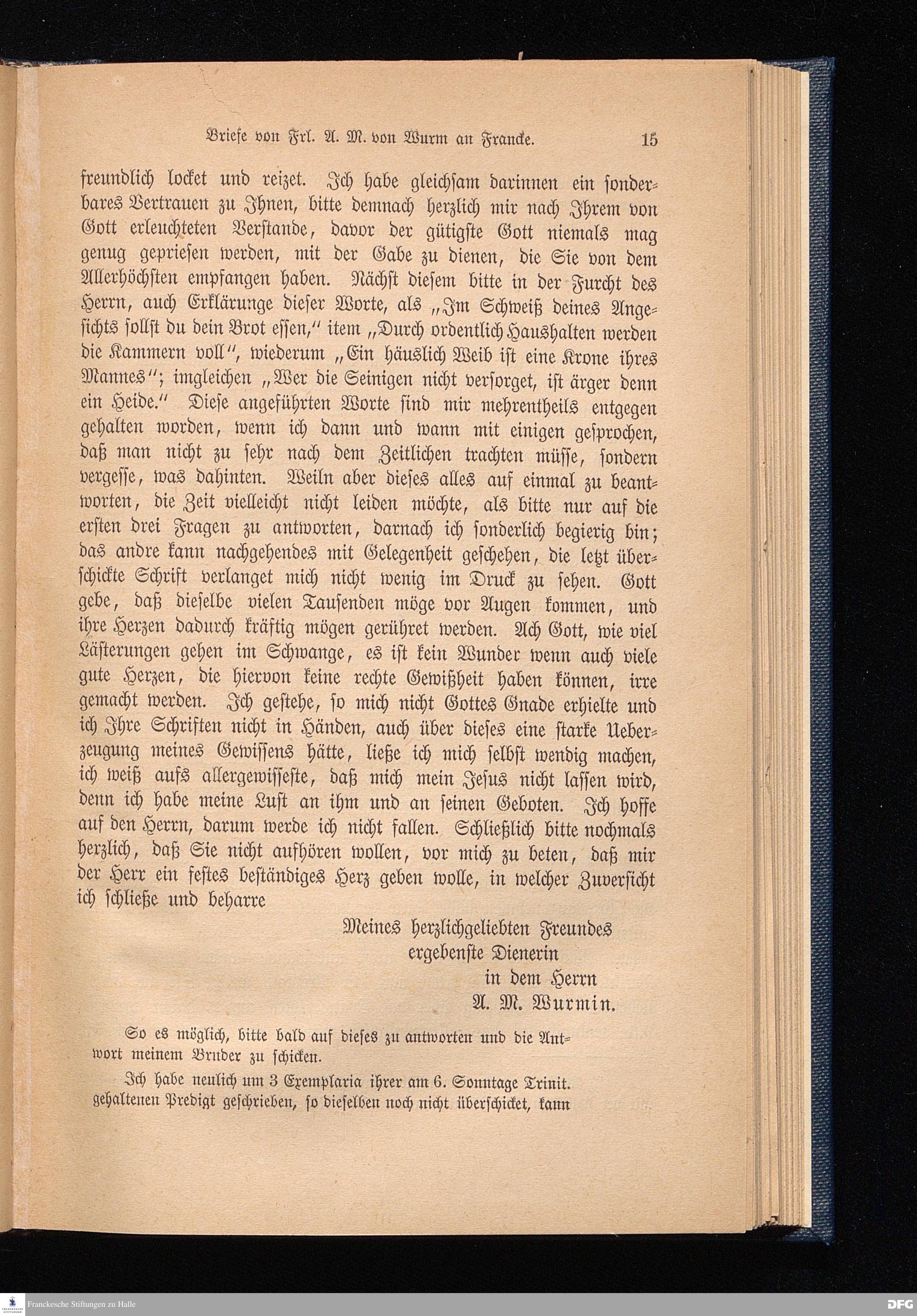 Briefe von Fäulein Anna Magdalena von Wurm an A. H. Francke.