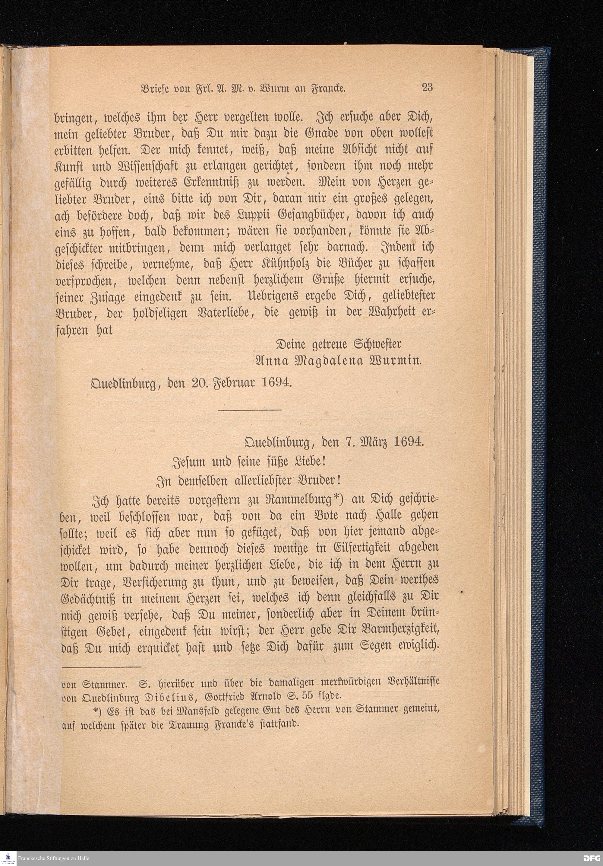 Briefe von Fäulein Anna Magdalena von Wurm an A. H. Francke.