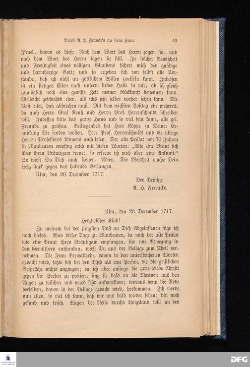 Briefe von A. H. Francke an seine Frau.