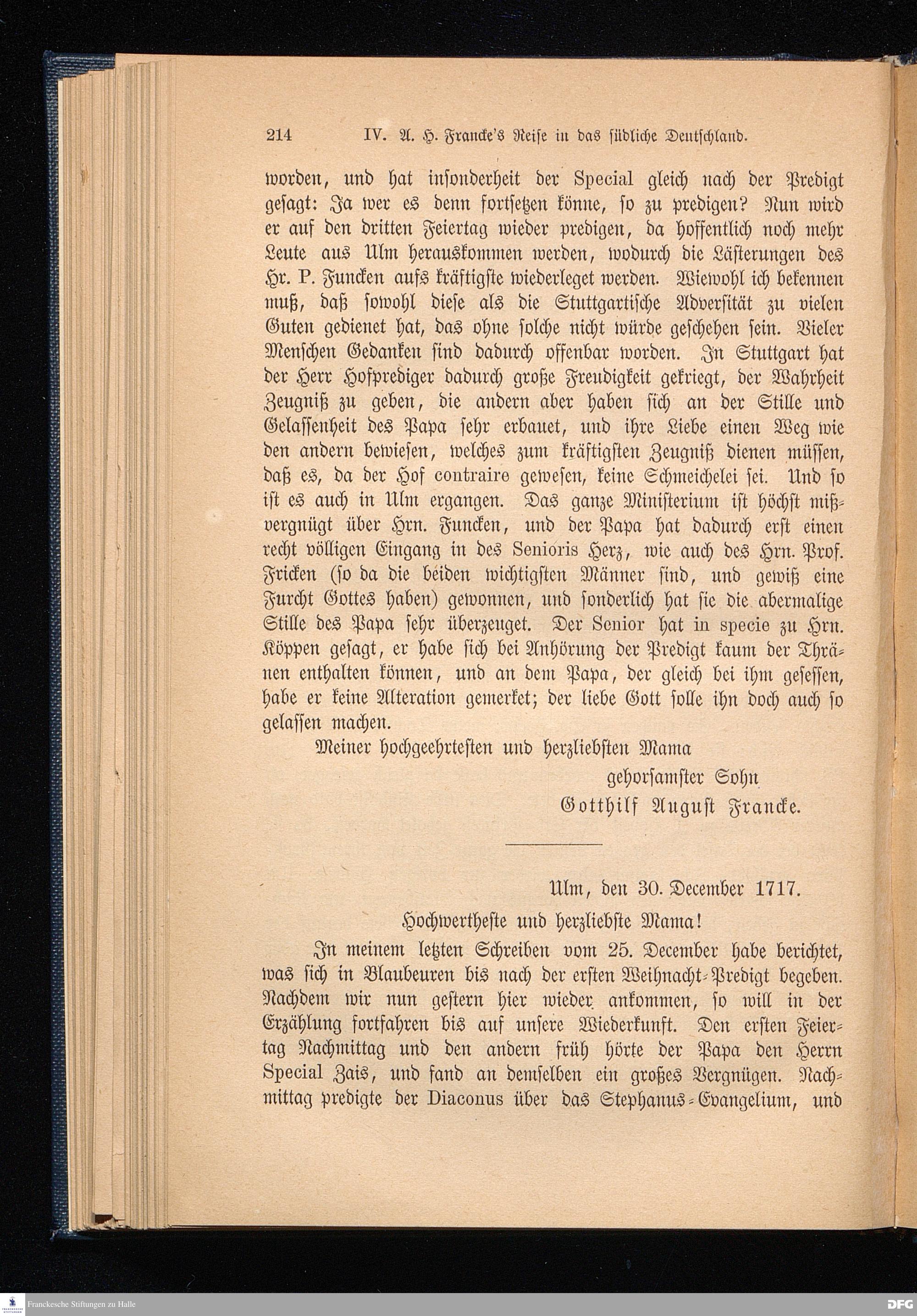 IV. A. H. Francke's Reise in das südliche Deutschland.