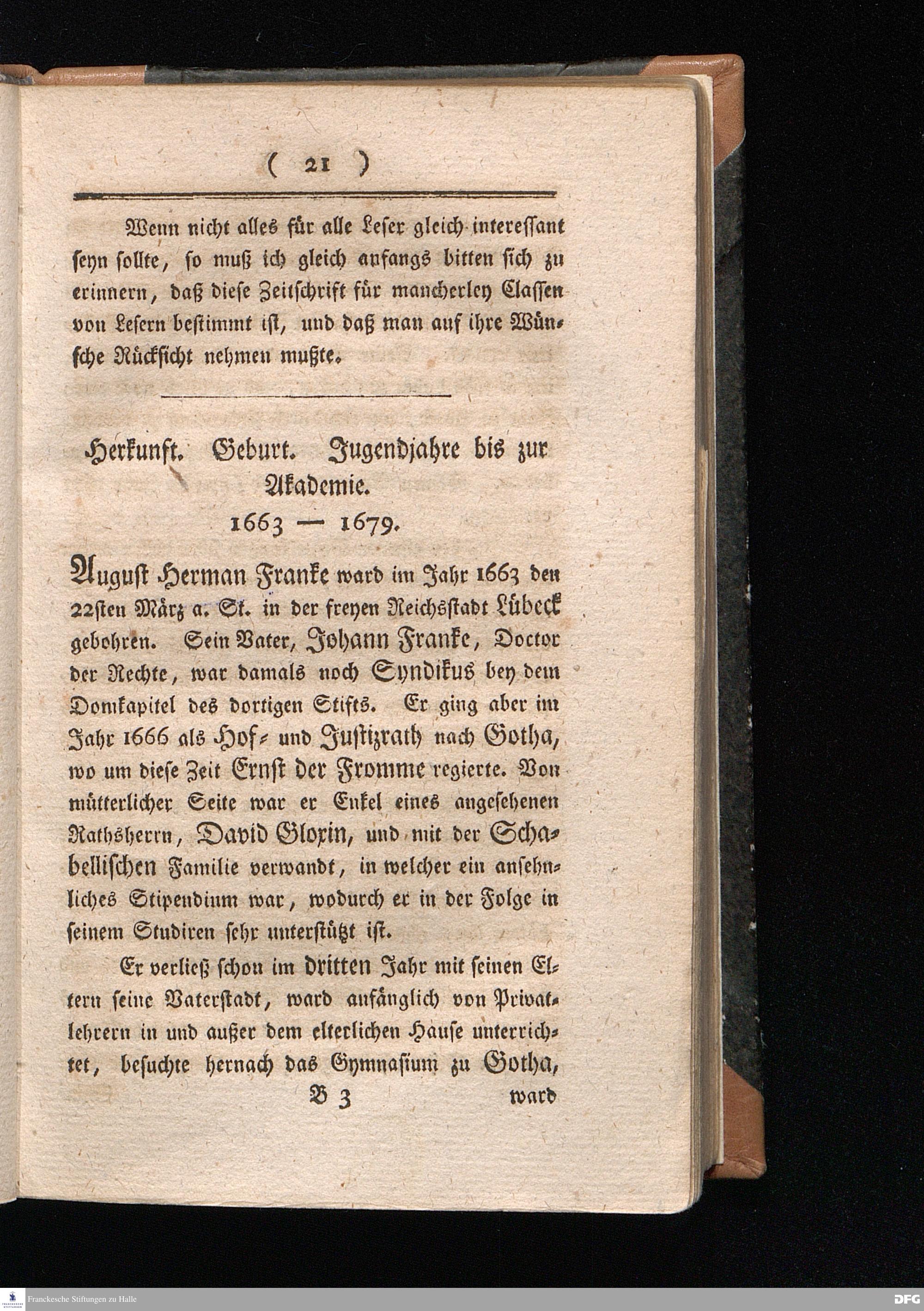 II. Allgemeine chronologische Uebersicht des Lebens und der Stiftungen August Herman...