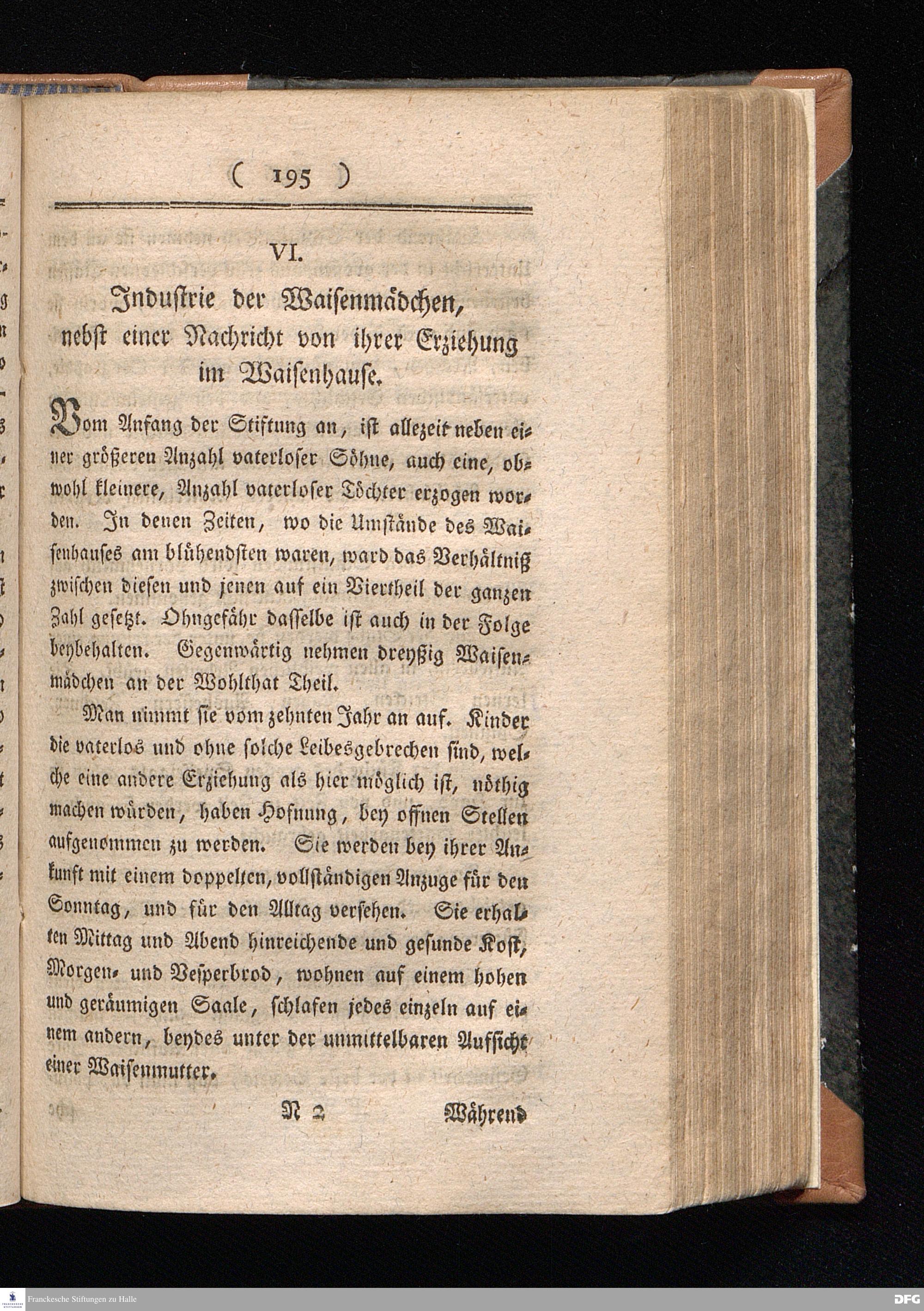 VI. Industrie der Waisenmädchen, nebst einer Nachricht von ihrer Erziehung im Wa...