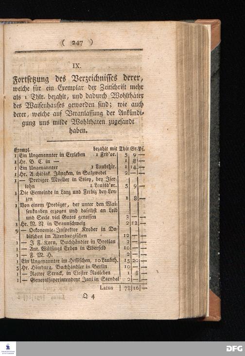 IX. Fortsetzung des Verzeichnisses derer, welche für ein Exemplar der Zeitschrift...