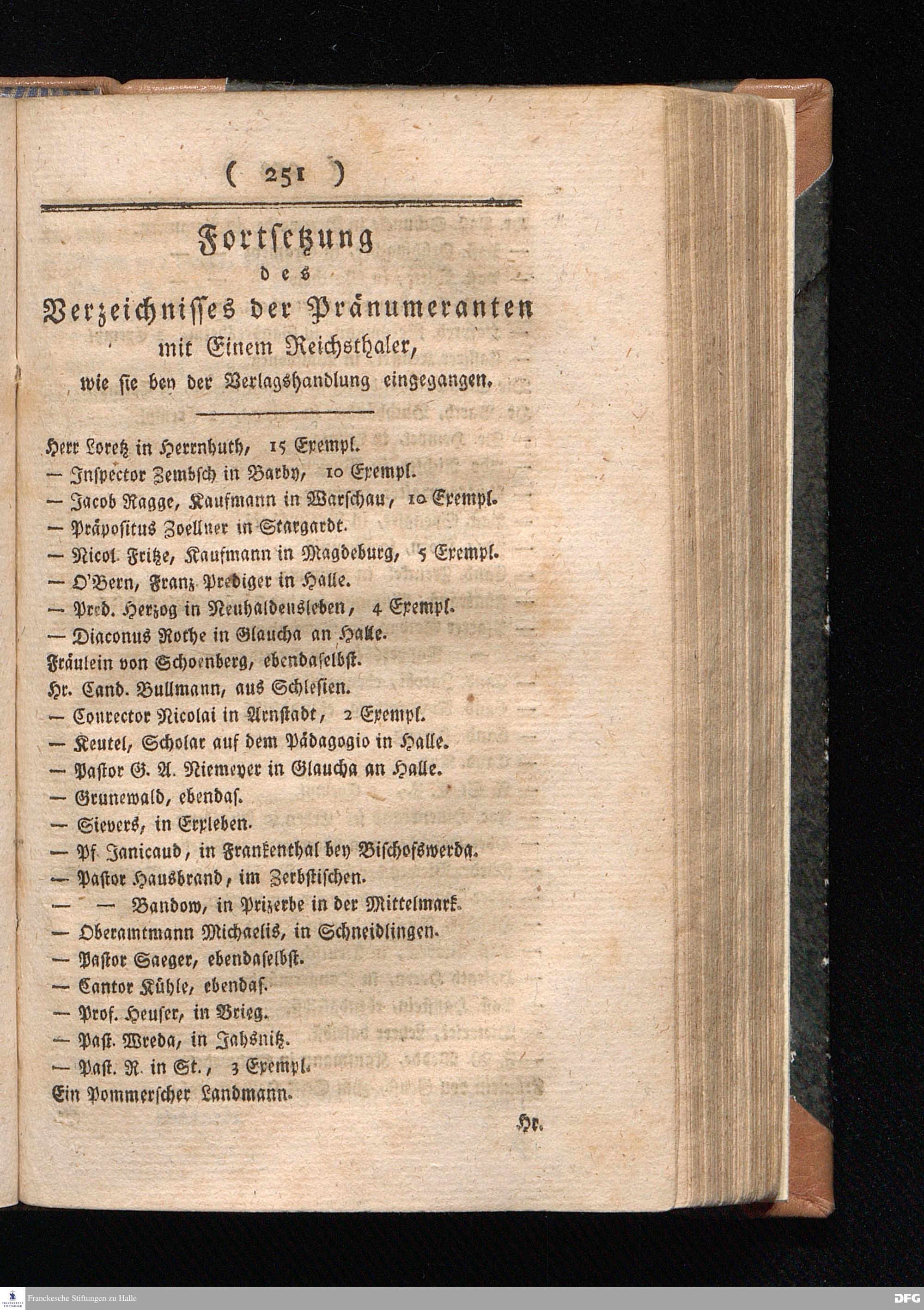 Fortsetzung des Verzeichnisses der Pränumeranten, mit Einem Reichsthaler, wie sie...