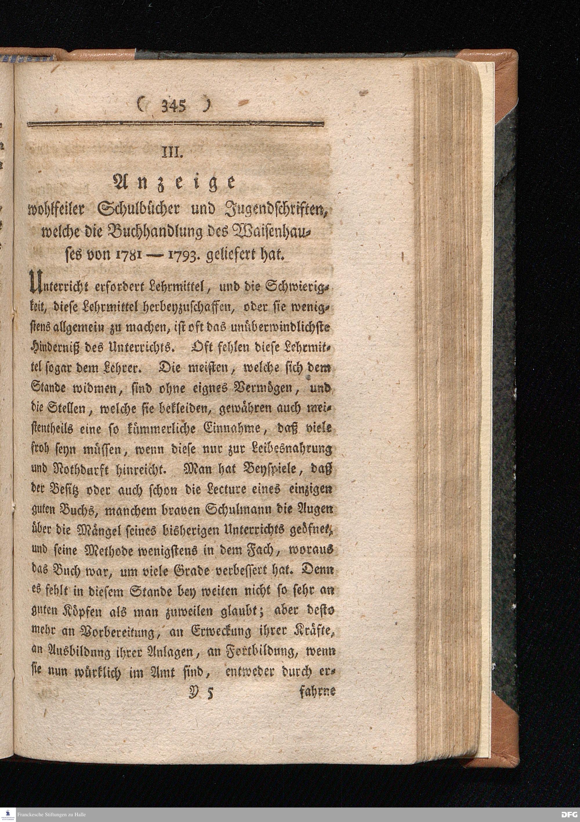III. Anzeige wohlfeiler Schulbücher und Jugendschriften, welche die Buchhandlung...