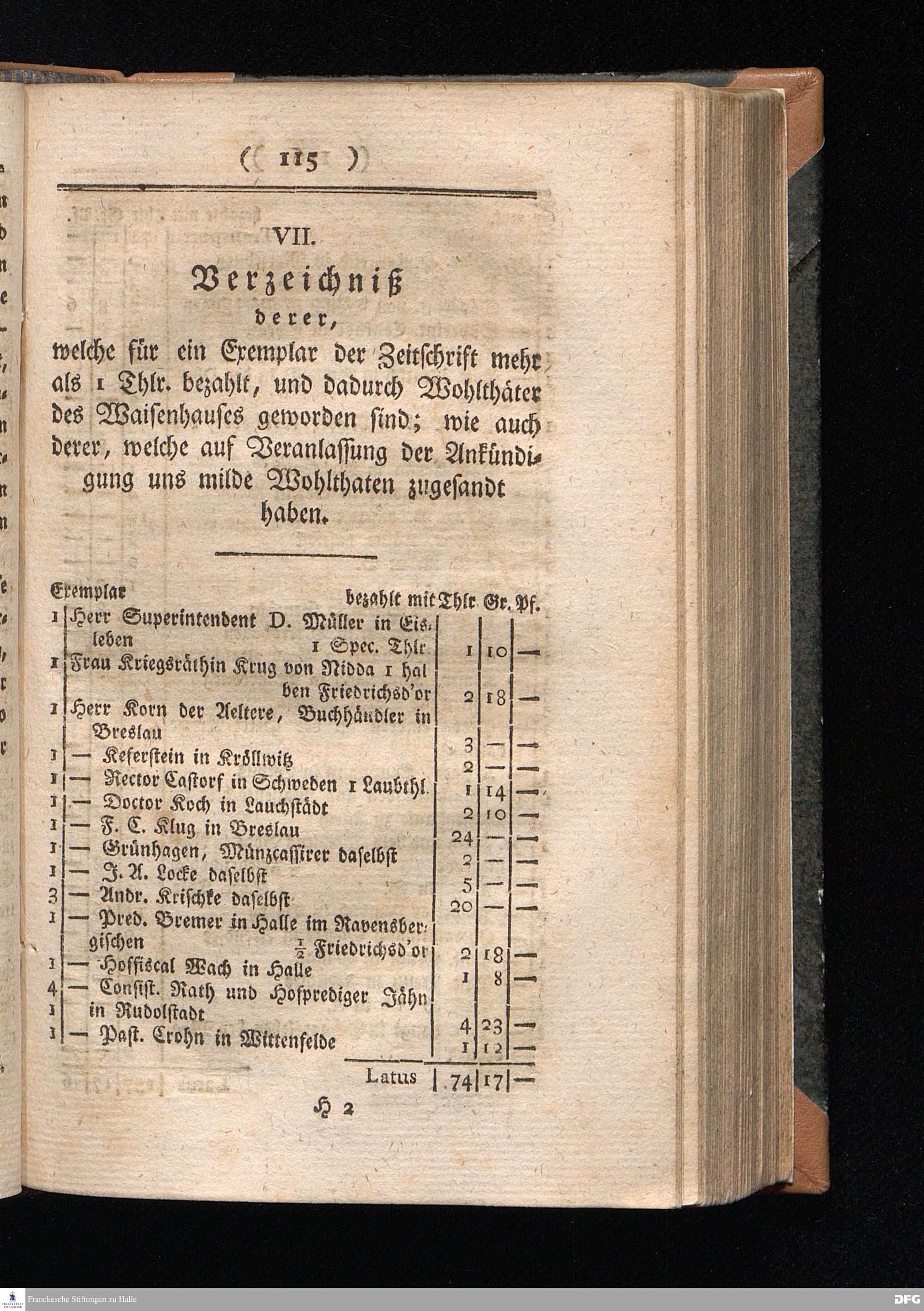 VII. Verzeichniß derer, welche für ein Exemplar der Zeitschrift mehr als 1 Thlr....