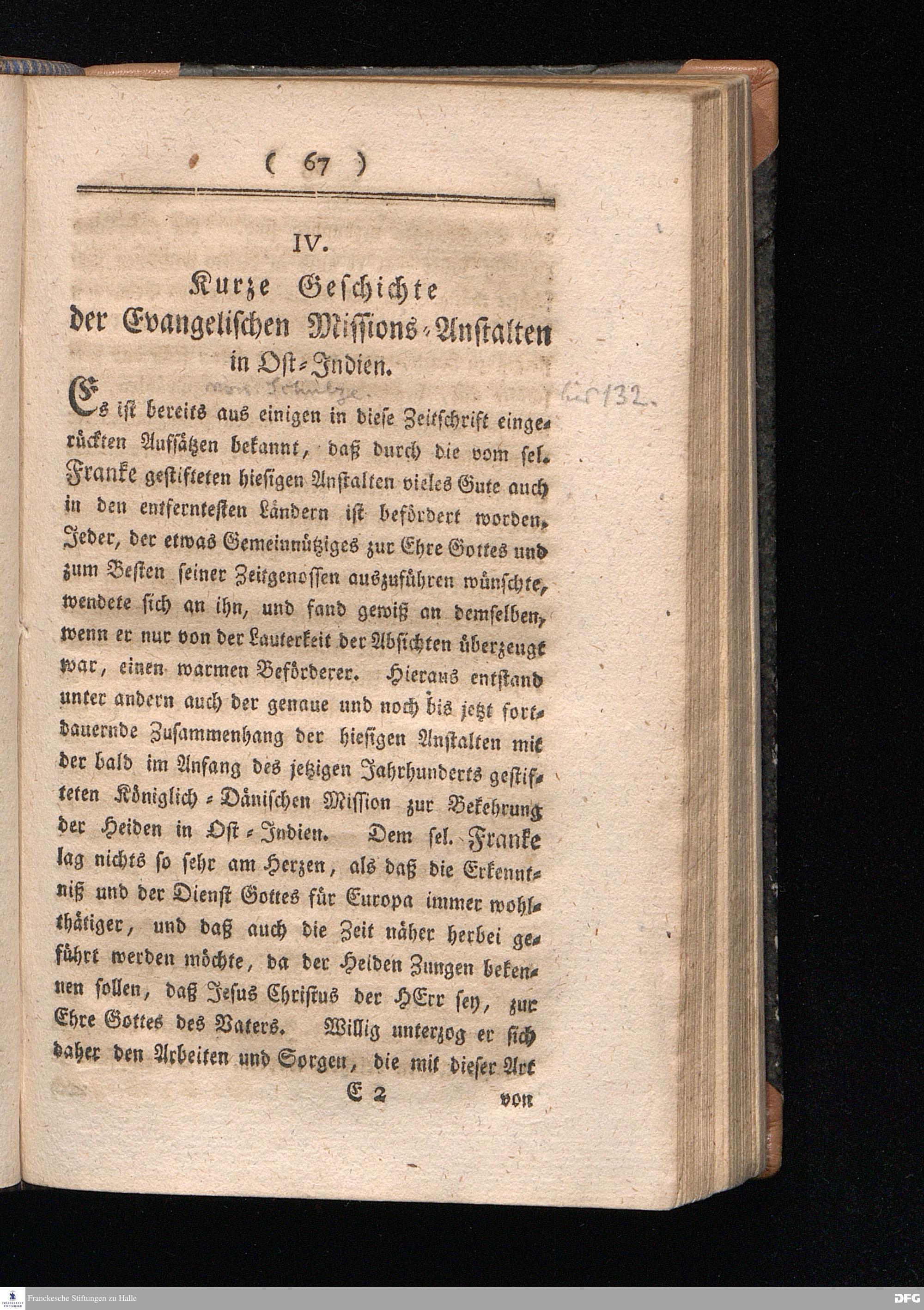 IV. Kurze Geschichte der Evangelischen Missions-Anstalten in Ost-Indien.