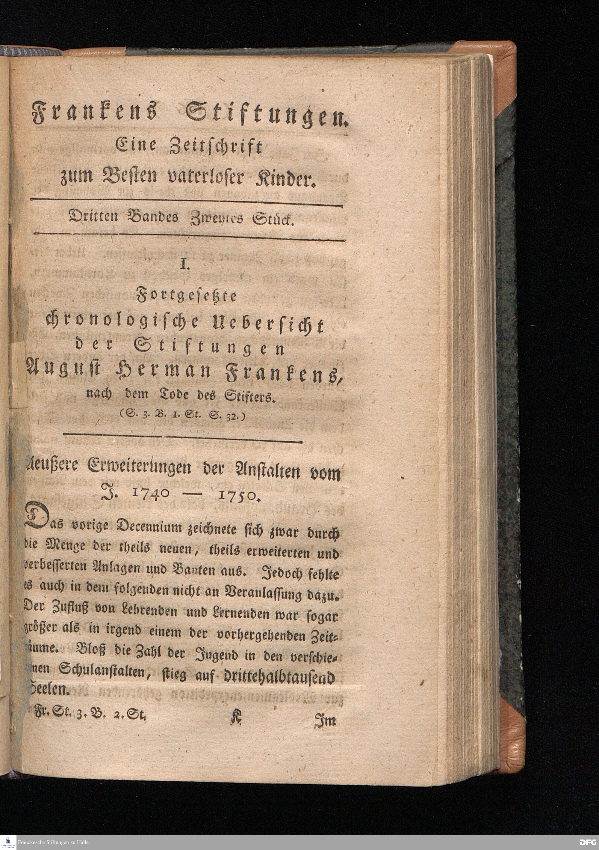 I. Fortgesetzte chronologische Uebersicht der Stiftungen August Herman Frankens,...