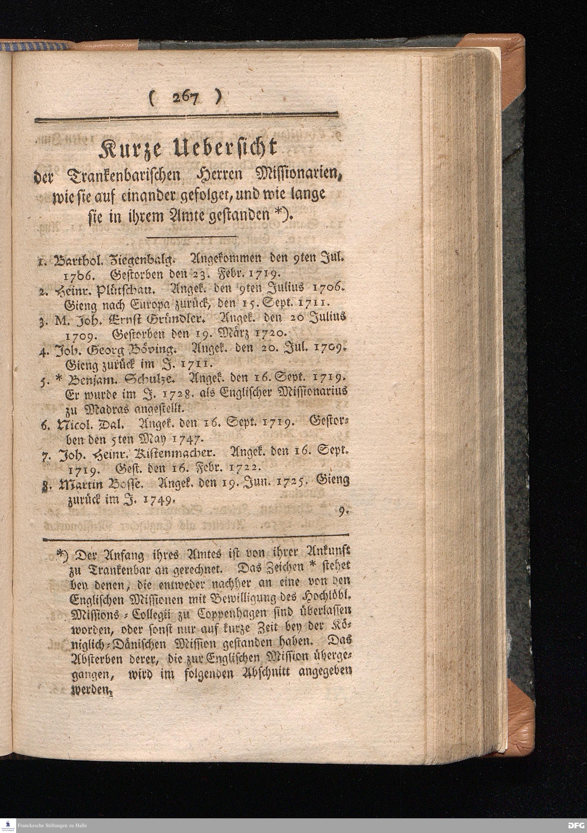 Kurze Uebersicht der Trankenbarischen Herren Missionarien, wie sie auf einander gefolget,...