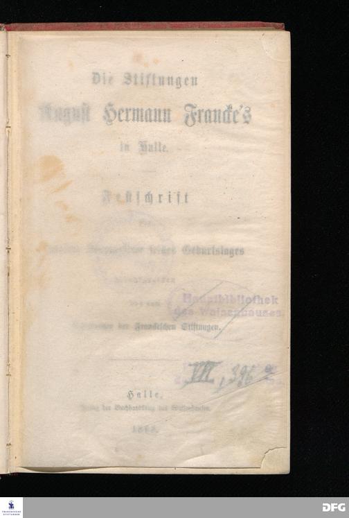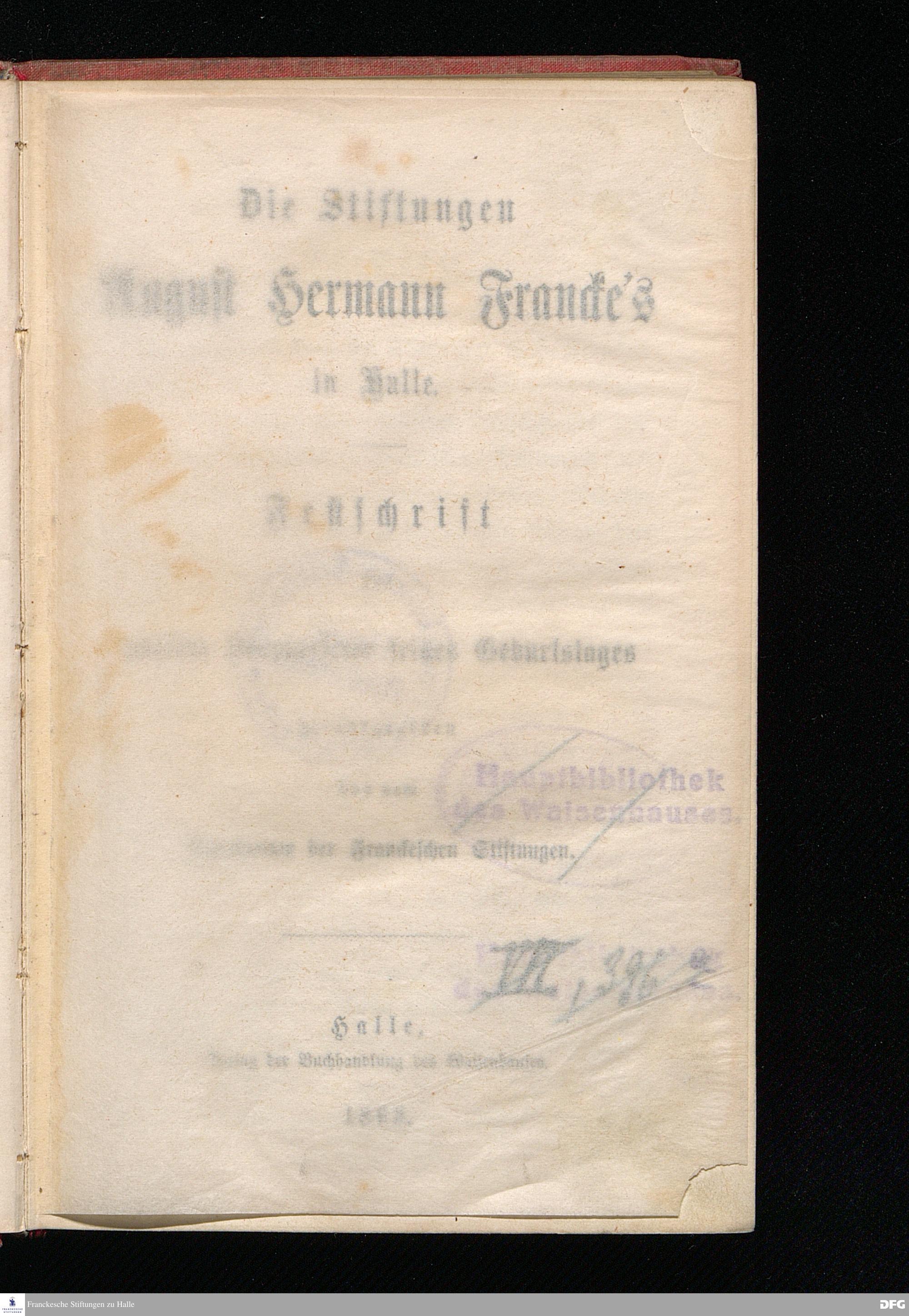 Die Stiftungen August Hermann Francke's in Halle. Festschrift zur zweiten Säcularfeier seines Geburtstages.
