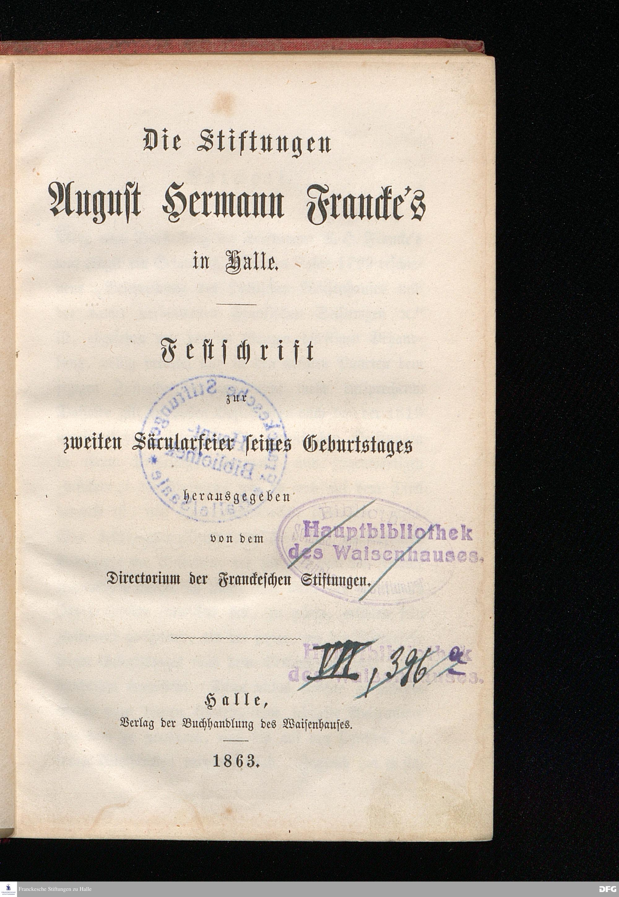 Die Stiftungen August Hermann Francke's in Halle. Festschrift zur zweiten Säcularfeier seines Geburtstages.