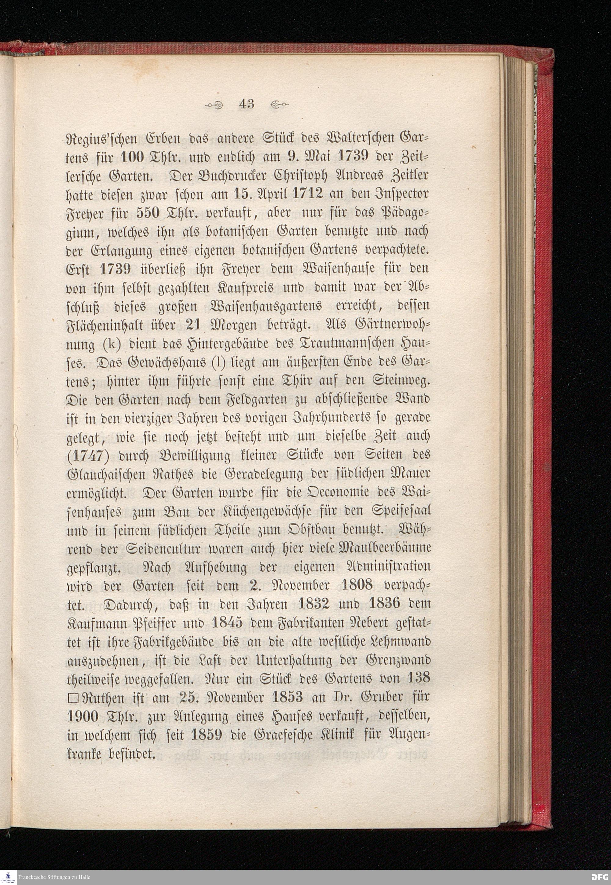 Erster Abschnitt. Topographische Beschreibung der Franckeschen Stiftungen.