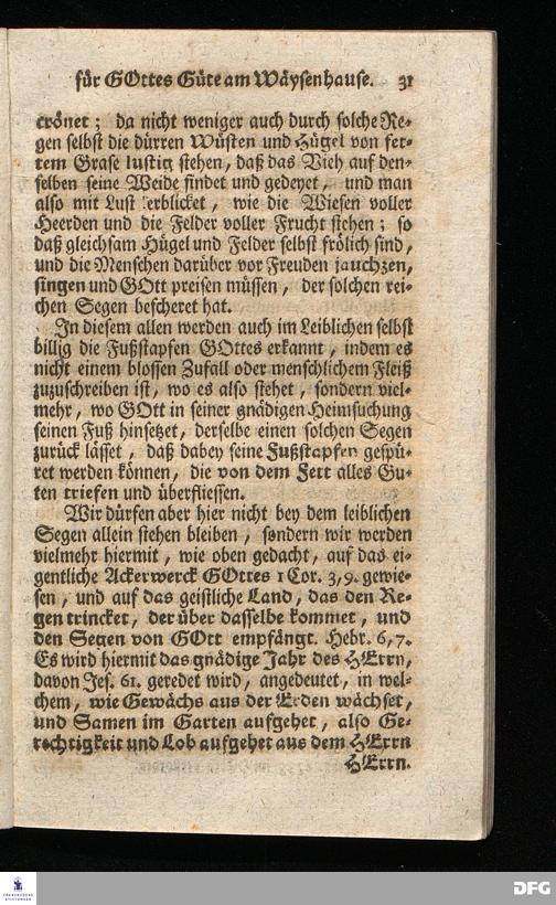 Schuldiges Lob- und Danck-Opfer für die Güte und Wohlthaten Gottes, so derselbe an dem Wäysenhause zu Glaucha an Halle seitdem der Grundstein zu demselben vor funfzig Jahren geleget worden, bis hieher reichlich erzeiget hat, den 24.sten Jul. 1748.